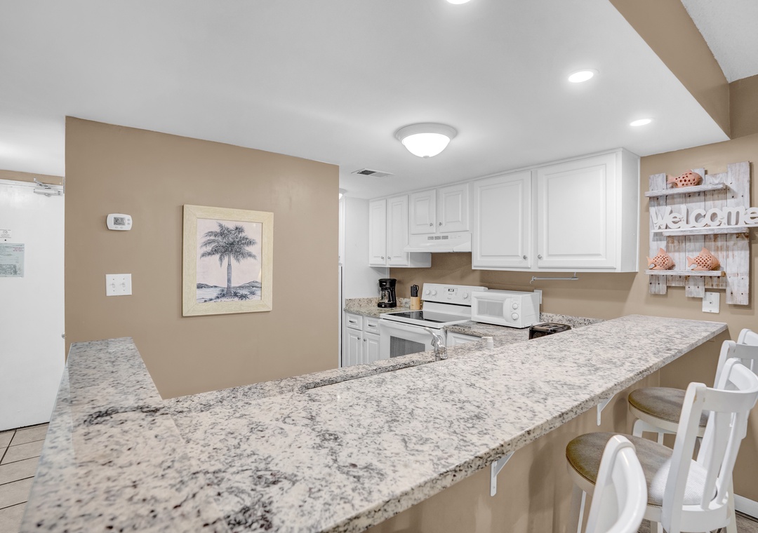 * Fully Equipped Kitchen with Granite Countertops and Breakfast Bar