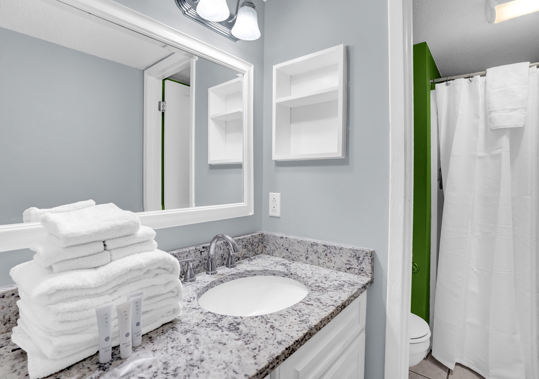 As shown in photos! Only one elevator was working but room is close to stairwell. Parking is shaded but having a bigger vehicle would be difficult to park. Gate security (DON) was super nice and welcoming. There is a snack bar located by the pools and that was very nice with children. I would only suggest the owners to have a hair dryer in the condo! Most do but this one did not.- Reviewed On: 6/22/2025
