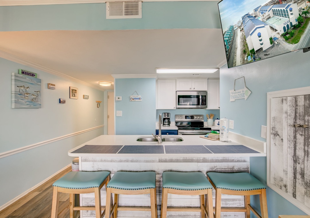 The only thing I would say is that the description says it sleeps 6. It really does not sleep 6 comfortably. It’s a tiny condo, and the bunk beds above the big bed are only big enough for children.