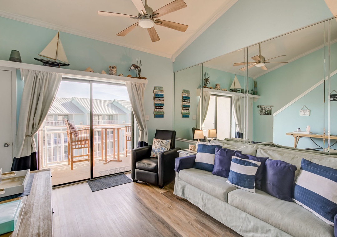 Welcome to Sugar Beach 301, where your next beach vacation awaits! This large one bedroom unit has everything needed to have a fabulous time on the white sugar sands of Orange Beach! Inside this unit you will find an open concept living space and well-equipped kitchen. Living space includes a large flat screen TV with sleeper sofa. Main floor also includes a bathroom with walk-in shower and washer and dryer for your convenience. Enjoy your mornings on the private balcony drinking coffee. Upstairs in the loft you will find the bedroom with a queen-size bed under two twin-size beds. Upstairs also has an additional bathroom with shower/tub combo.