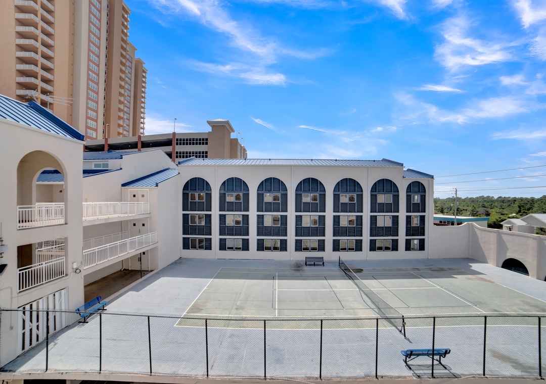 Sugar Beach is a family-friendly Gulf-front complex offering three swimming pools including a kiddie pool, three shaded gazebos, picnic tables, a snack bar known as the Sugar Shack, BBQ grilling areas, and a tennis court. Free WiFi is available throughout the property, ensuring you stay connected while enjoying a relaxing beach vacation.