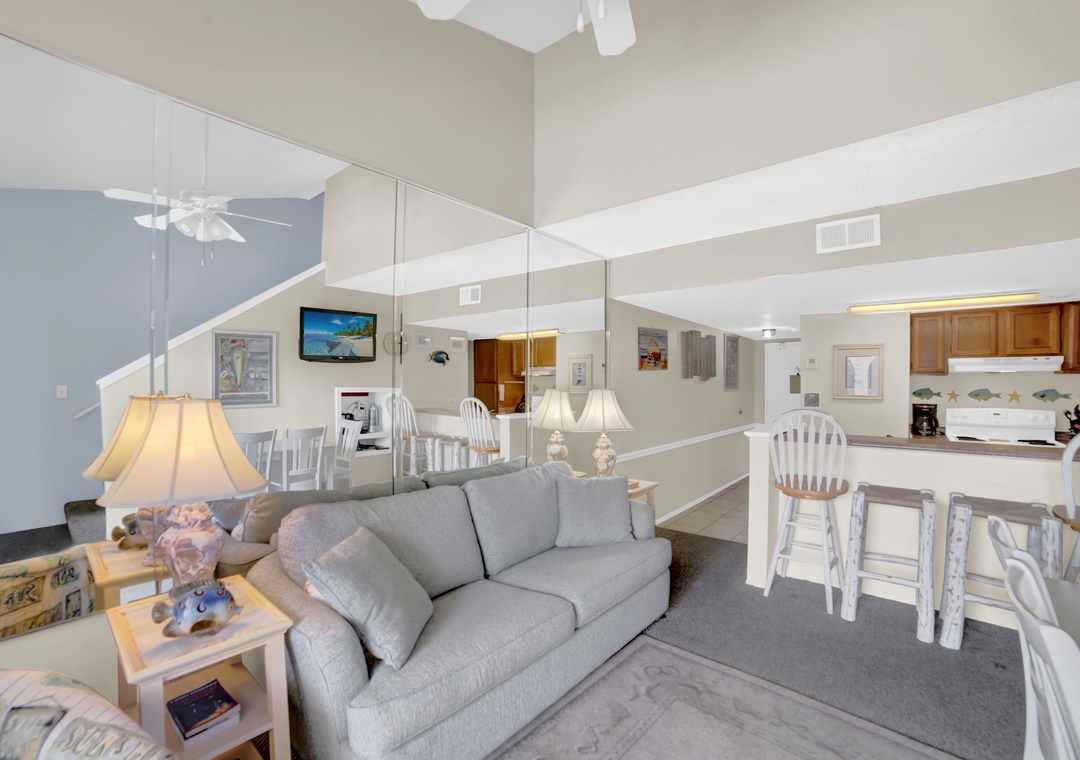 Welcome to Sugar Beach 312, your comfortable retreat by the Gulf in Orange Beach. This charming 1-bedroom, 2-bathroom condo offers a spacious and inviting living area thoughtfully designed for a memorable stay. The Primary bedroom features a cozy Queen-sized bed for restful nights, while a Queen-sized sleeper sofa in the living room provides flexible sleeping arrangements for extra guests. Prepare meals in the fully equipped kitchen and gather in the dining area to enjoy your food in a warm, welcoming atmosphere. Step out onto the furnished balcony to soak in the sights and sounds of the Gulf Coast, or unwind indoors with your favorite shows on the flat-screen TV. With an in-unit washer and dryer, keeping your beachwear fresh is easy throughout your vacation.