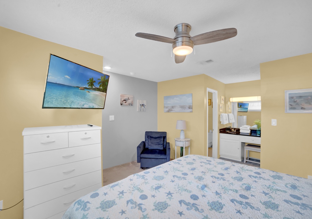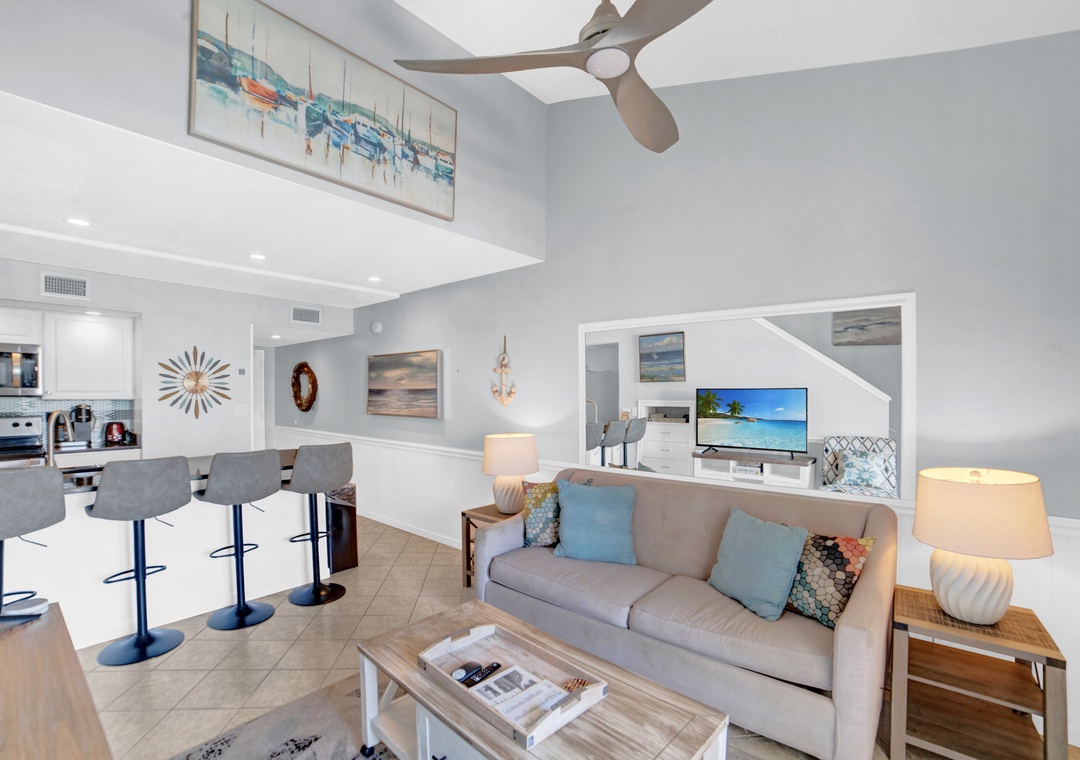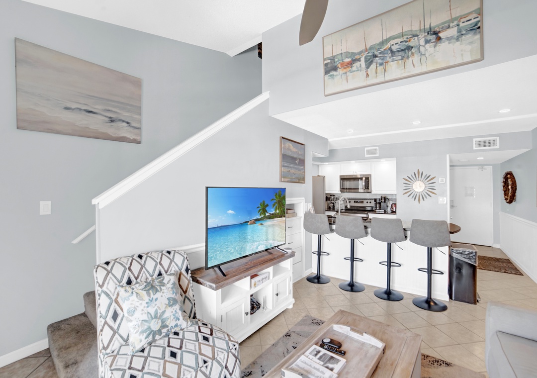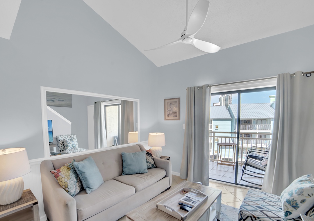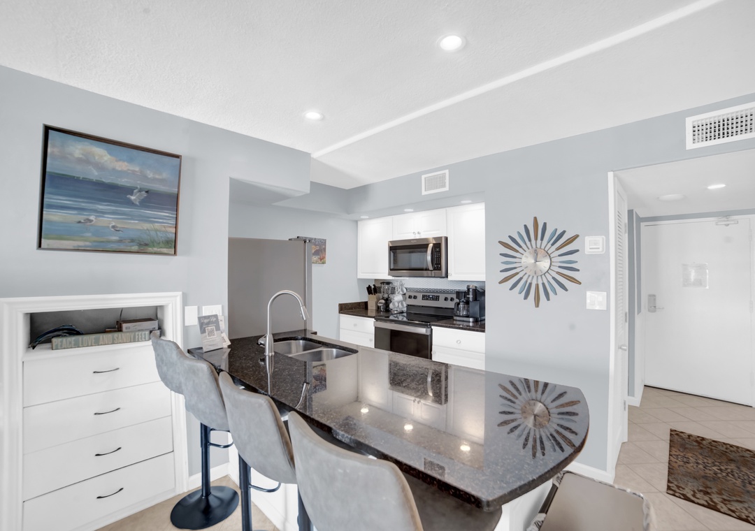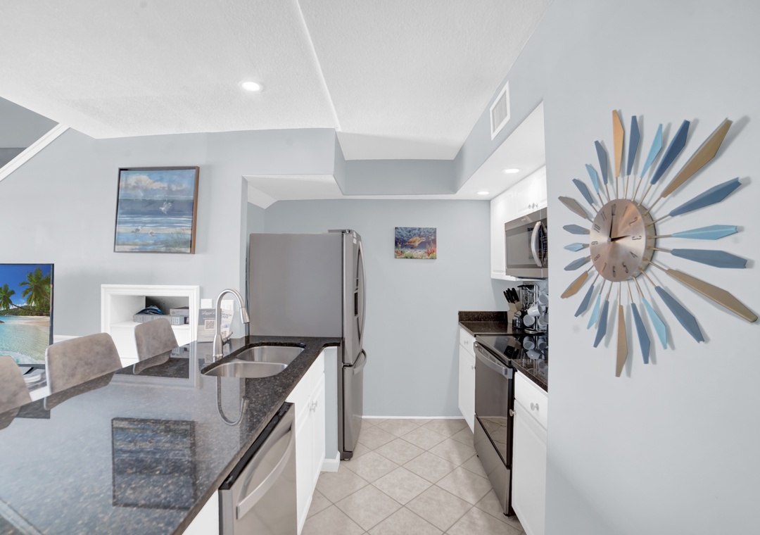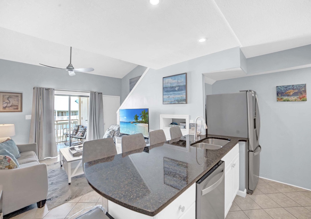 Step outside onto the furnished balcony to enjoy the sights and sounds of the Gulf Coast, whether you’re sipping morning coffee or watching the sunset. A flat-screen TV in the living area keeps you entertained, and the in-unit washer and dryer add convenience by keeping your beachwear fresh throughout your stay.