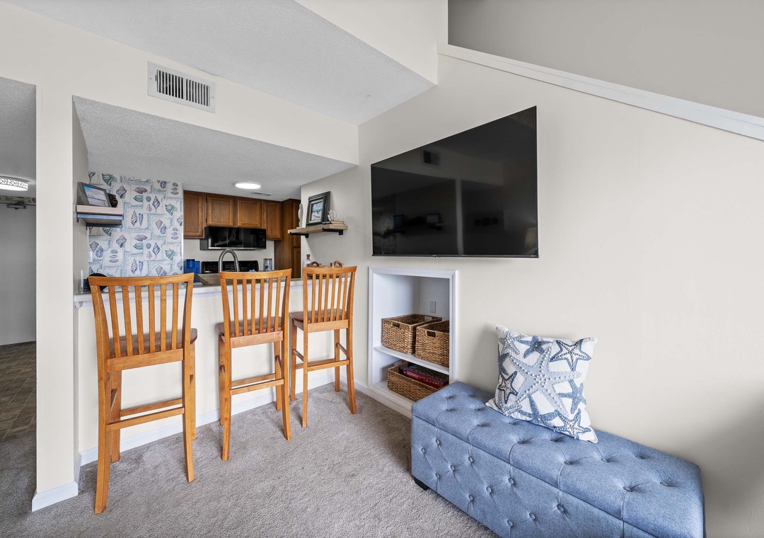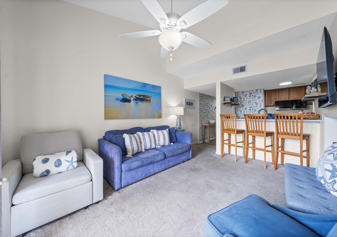 Welcome to Sugar Beach 323, your completely remodeled beachfront retreat in Orange Beach. This 1-bedroom, 2-bath condo features all new furniture, smart technology, and thoughtful family-friendly touches to ensure a comfortable and memorable stay. Enjoy a brand new king-sized bed in the Primary bedroom, plus a queen sleeper sofa and sleeper chair in the living area, perfect for guests or children. The upgraded kitchen includes a brand new LG smart microwave to make meal prep effortless. Step out onto your private furnished balcony and savor the Gulf views and fresh air.