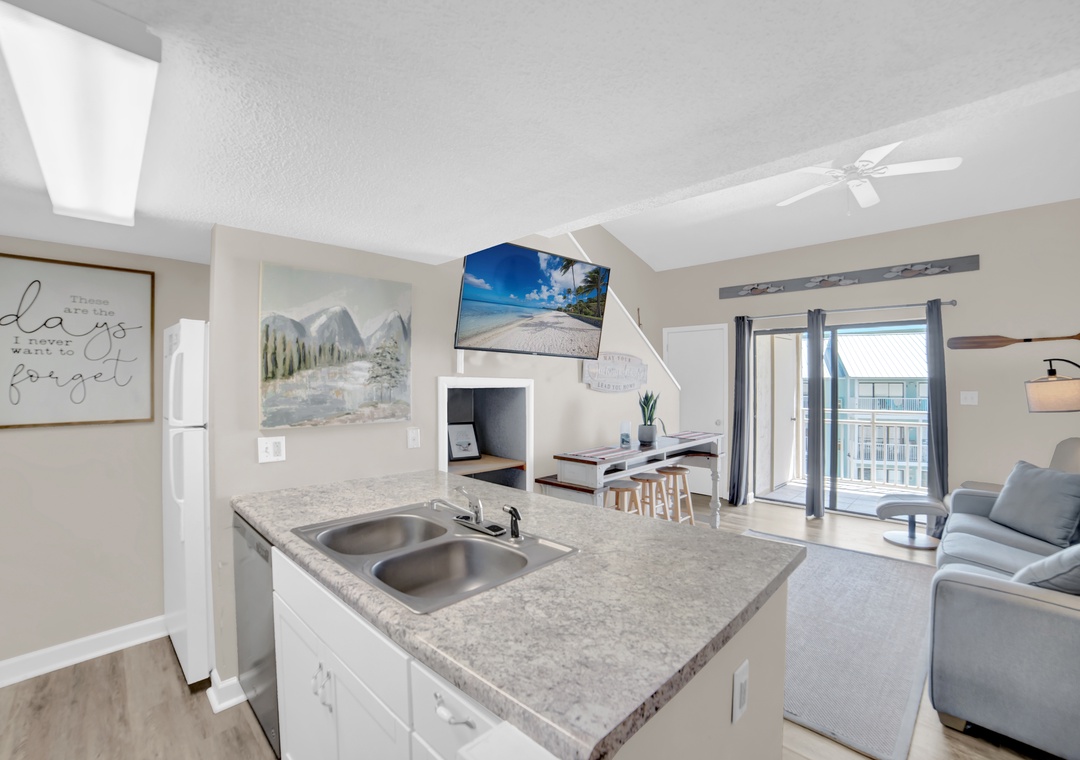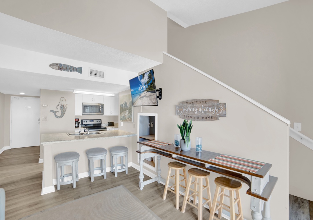 Welcome to Sugar Beach 335, your comfortable retreat by the Gulf in Orange Beach. This inviting 1-bedroom, 2-bathroom townhouse-style condo offers a relaxing space to unwind and enjoy the soothing sounds of the waves. The Primary bedroom features a plush King-sized bed, while the living area includes a Queen sleeper sofa for extra guests or family. The fully equipped kitchen makes meal prep easy, and the dining area is perfect for gathering with loved ones. Step outside to your furnished balcony to soak in the fresh Gulf breeze, whether sipping morning coffee or watching the sunset.