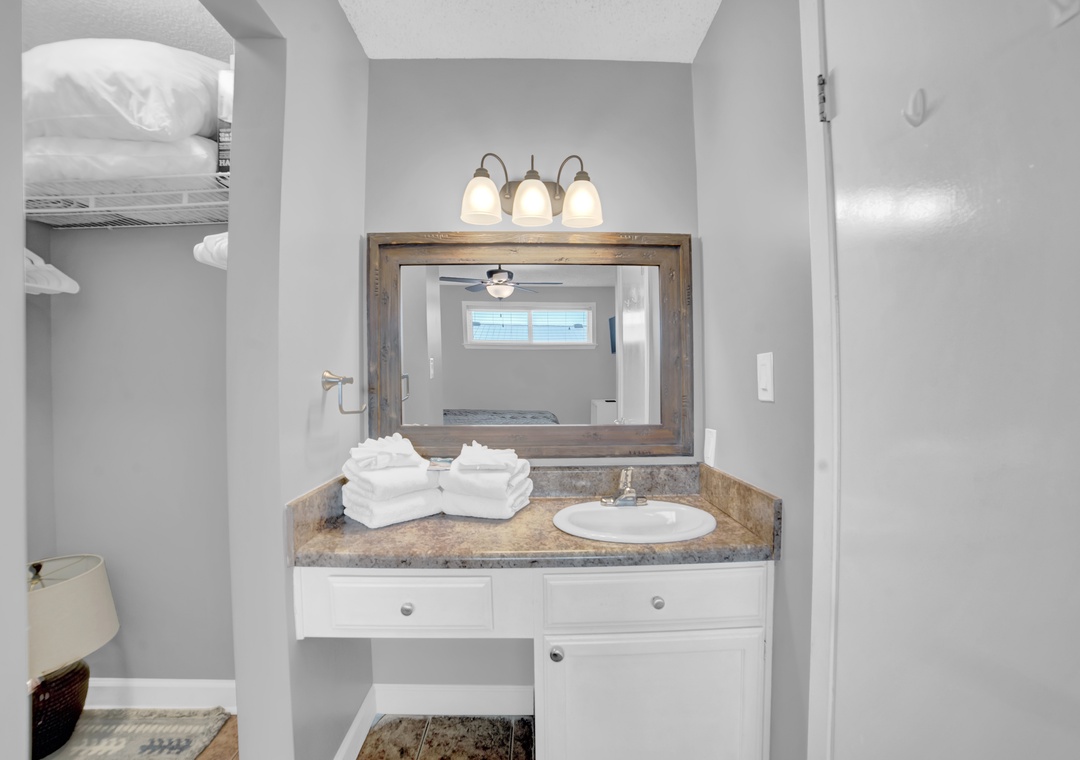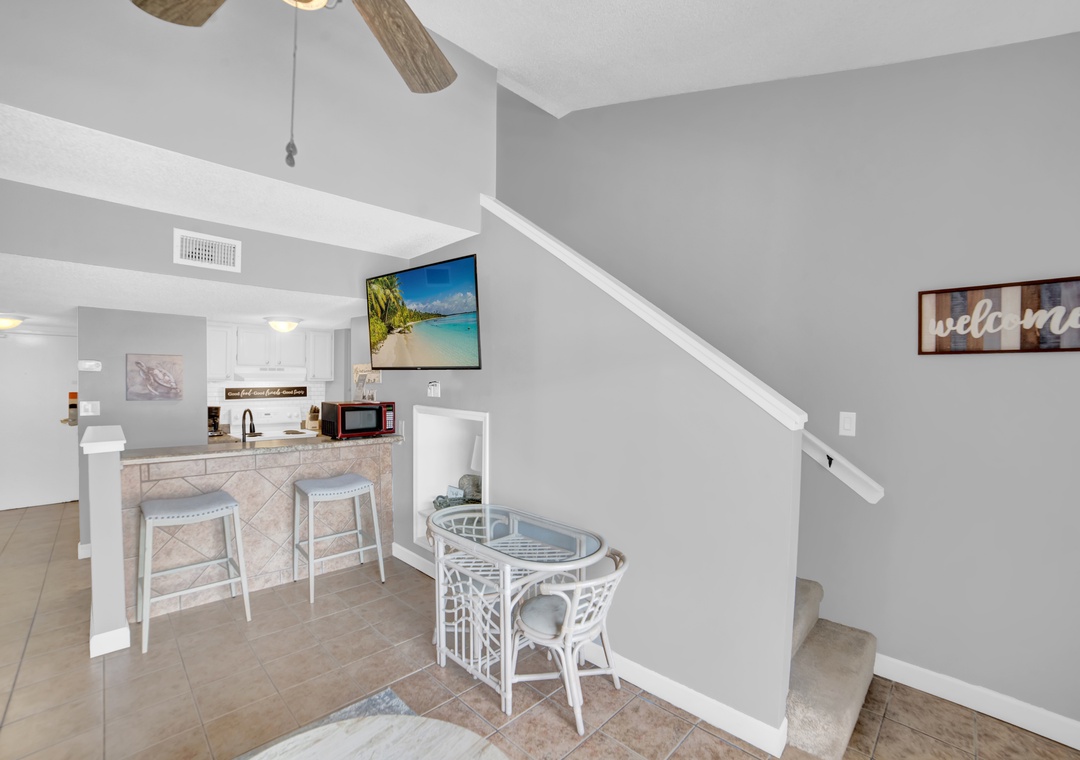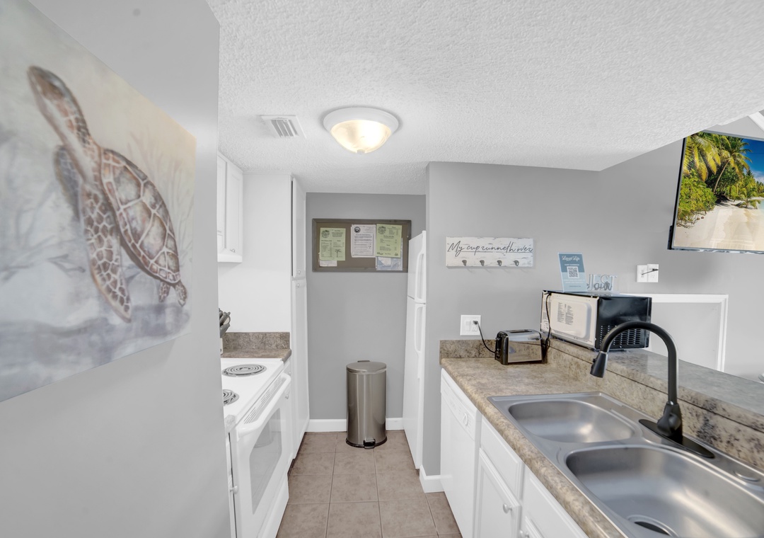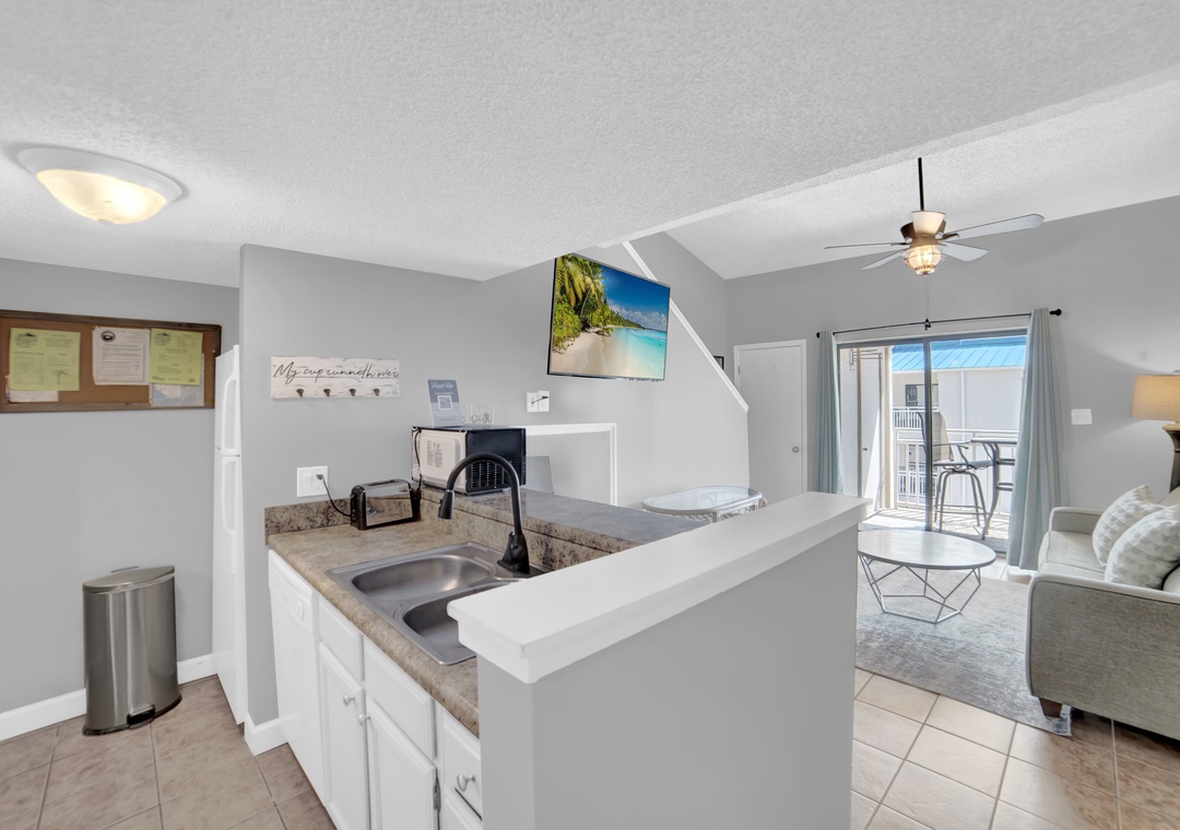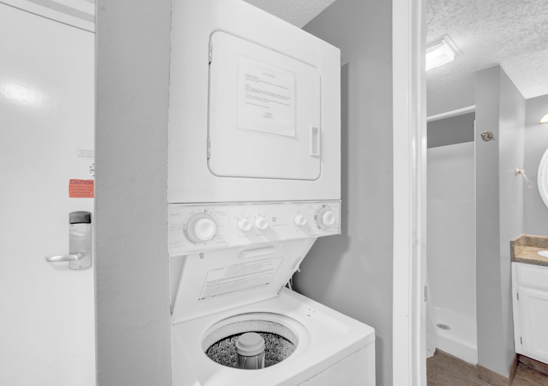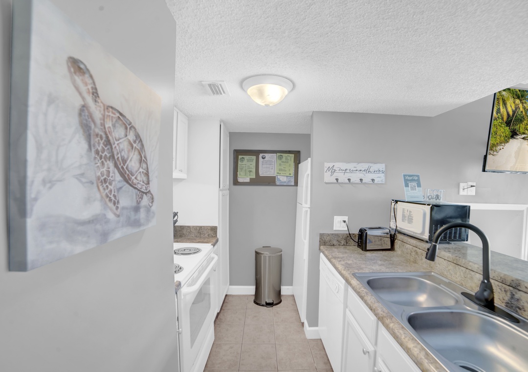 The fully equipped kitchen provides everything you need to prepare delicious meals during your stay. Whether you're whipping up a quick breakfast before hitting the beach or preparing a beachside picnic, you'll find all the essentials right at your fingertips. Additionally, the condo features a full-sized washer and dryer, offering added convenience for keeping your beachwear clean and fresh throughout your vacation.