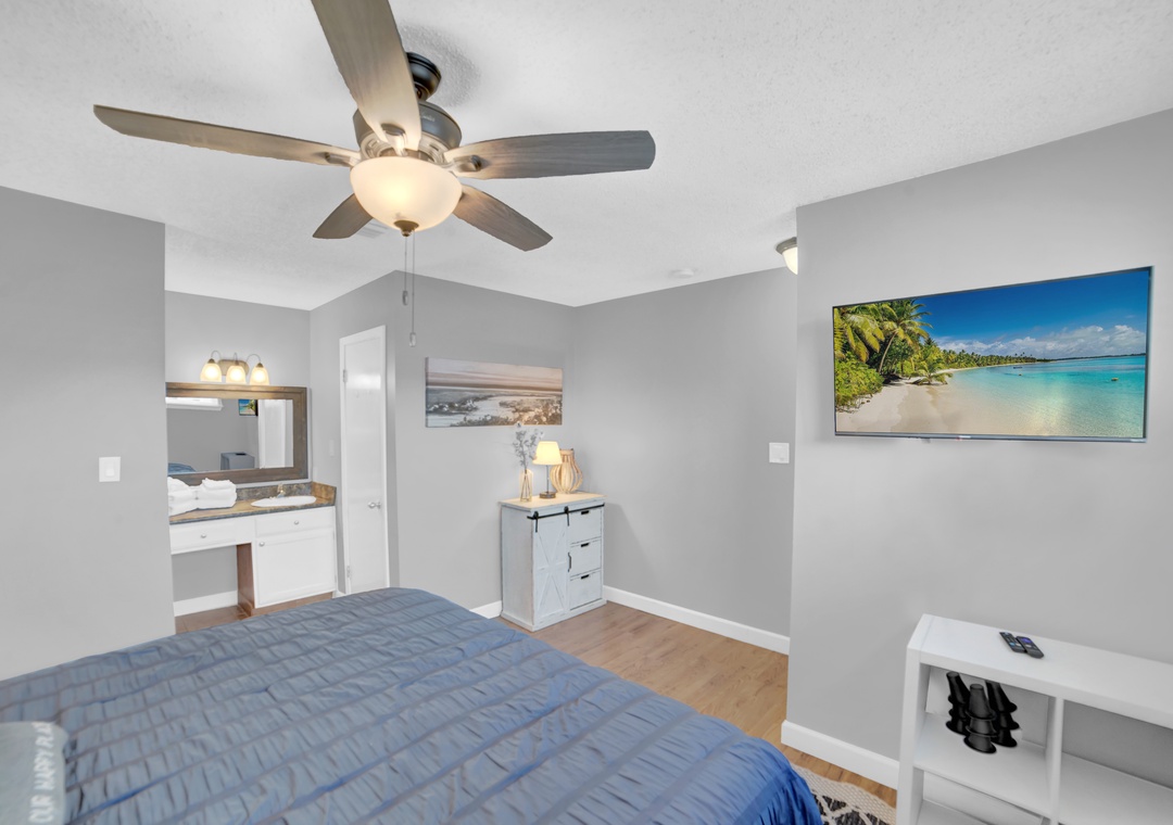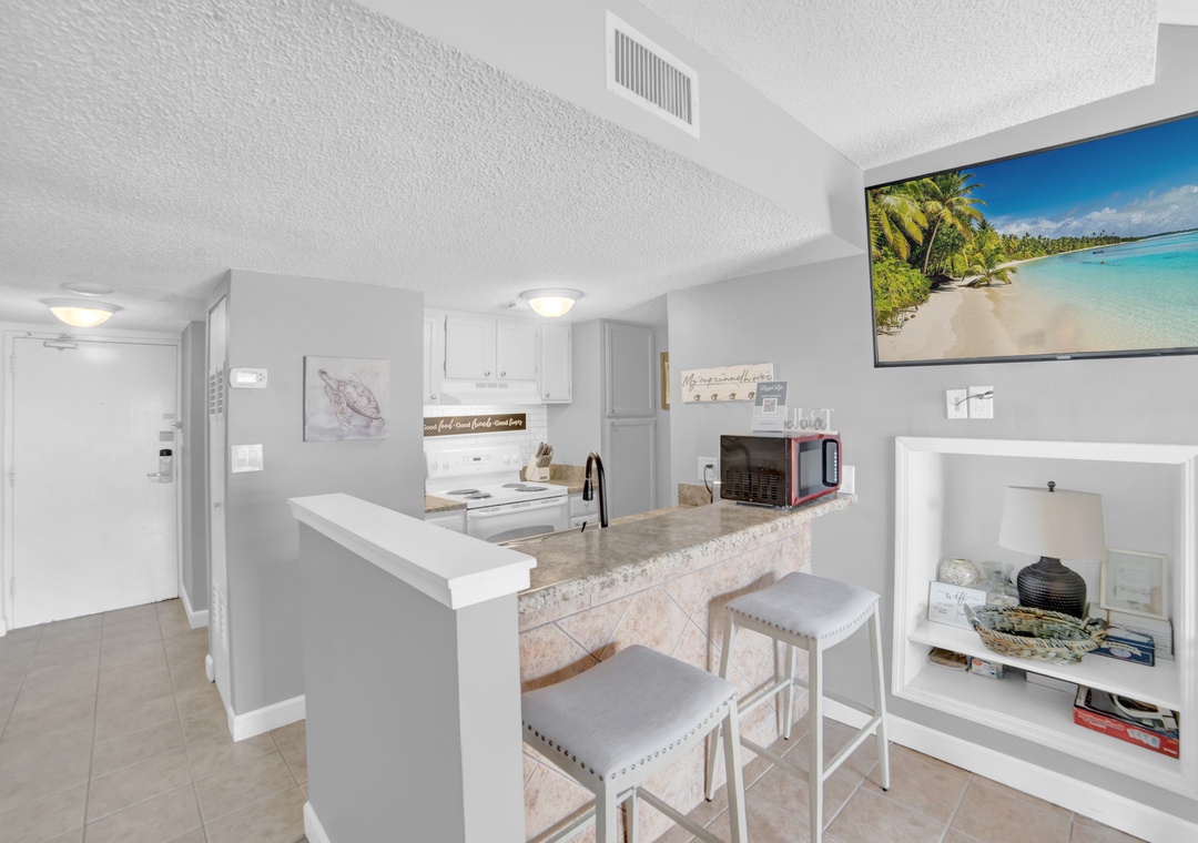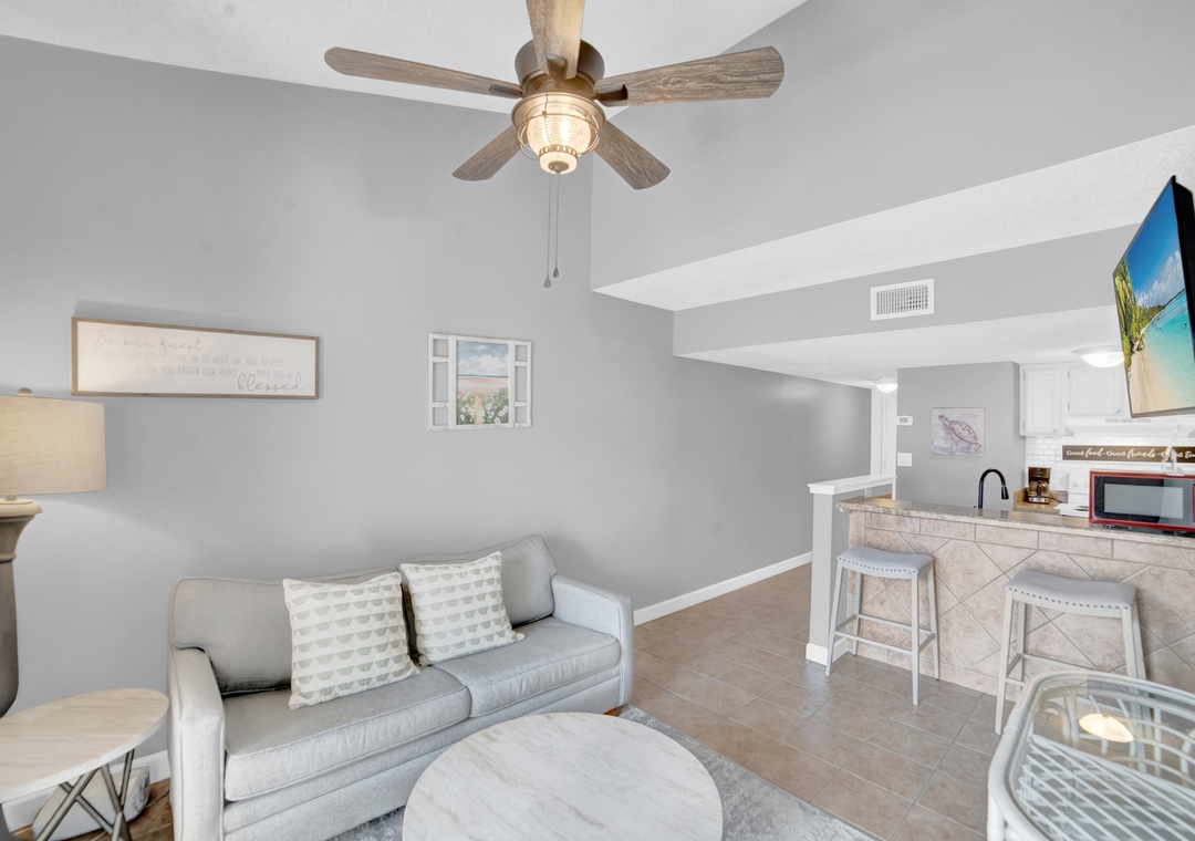Inside, the condo is well-appointed for comfort and modern convenience. Enjoy downtime in the living area, complete with free WiFi and a smart TV for streaming your favorite shows or movies. The Primary bedroom offers a King-sized bed, providing a peaceful retreat for restful nights. For extra sleeping space, the unit also includes a Queen-sized sleeper sofa in the living area.