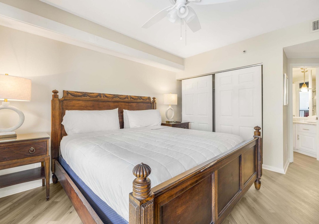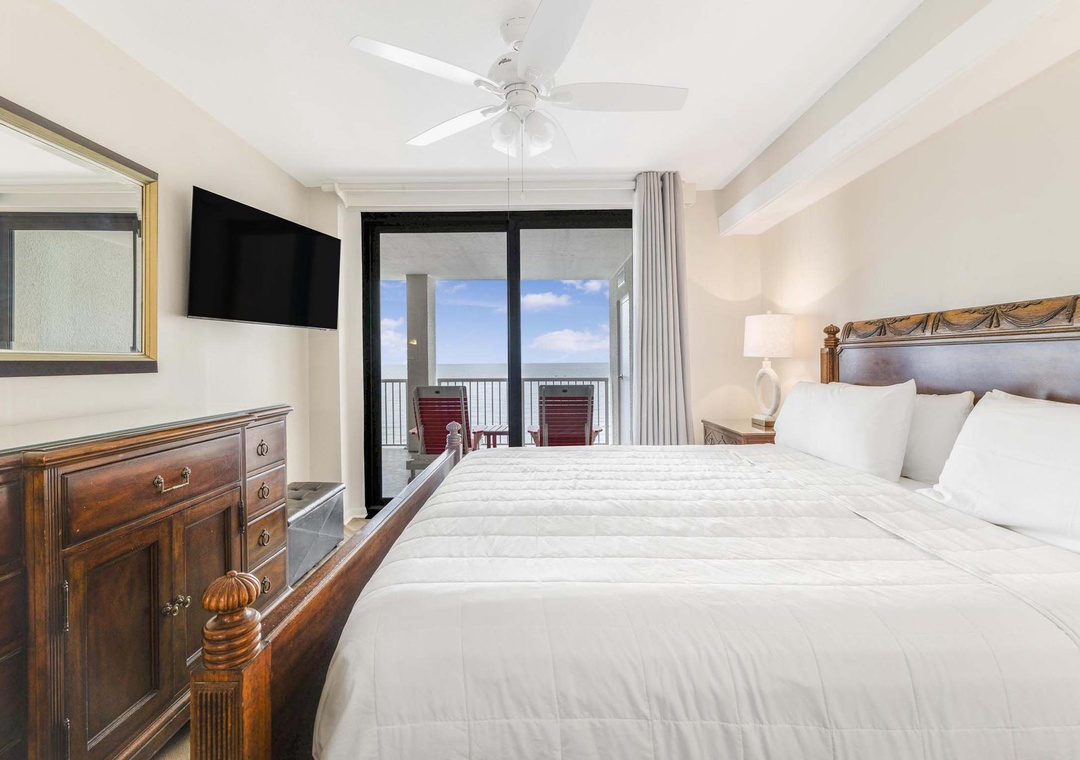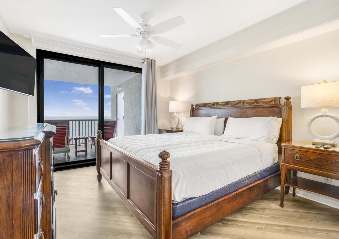 Bedroom 1: King Bed with En-Suite Bathroom and Balcony Access