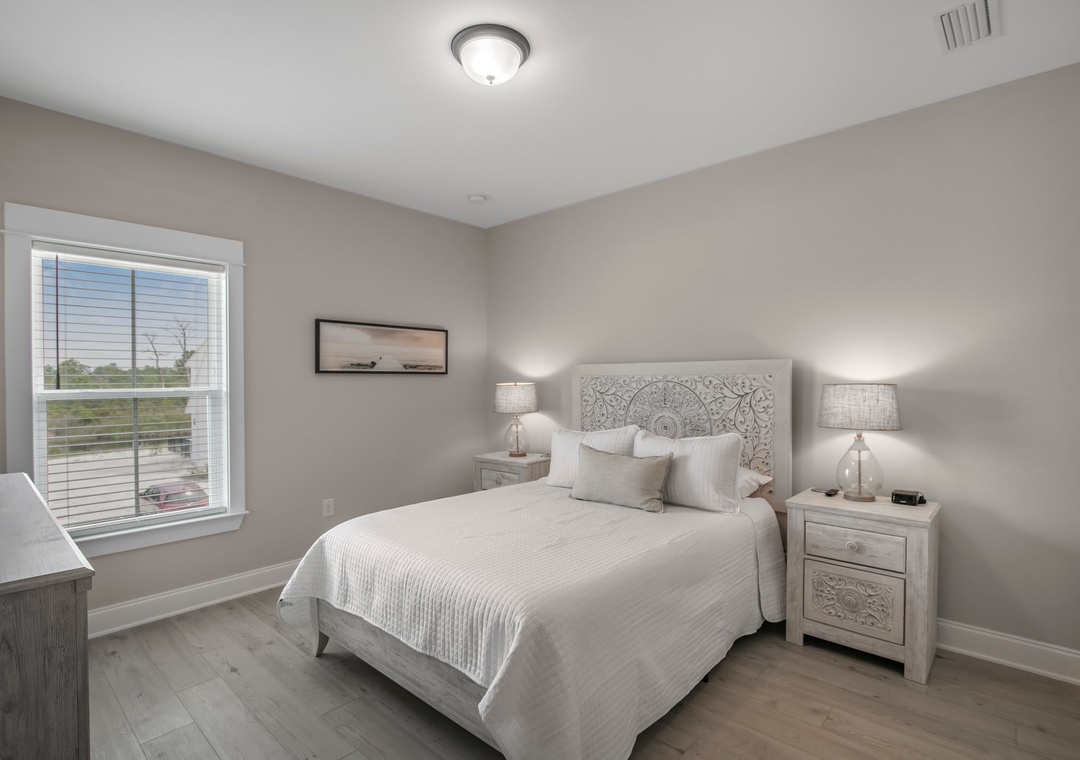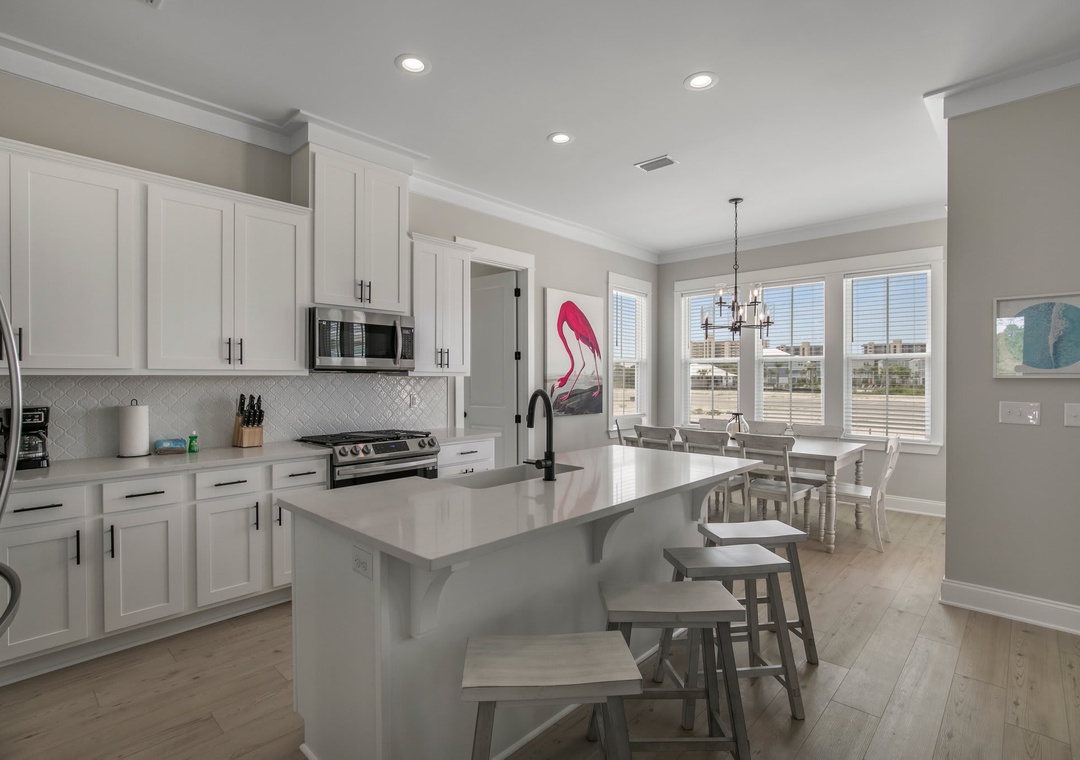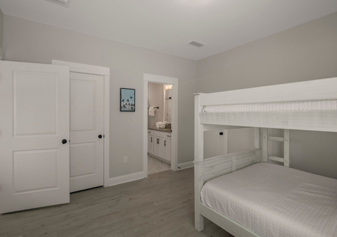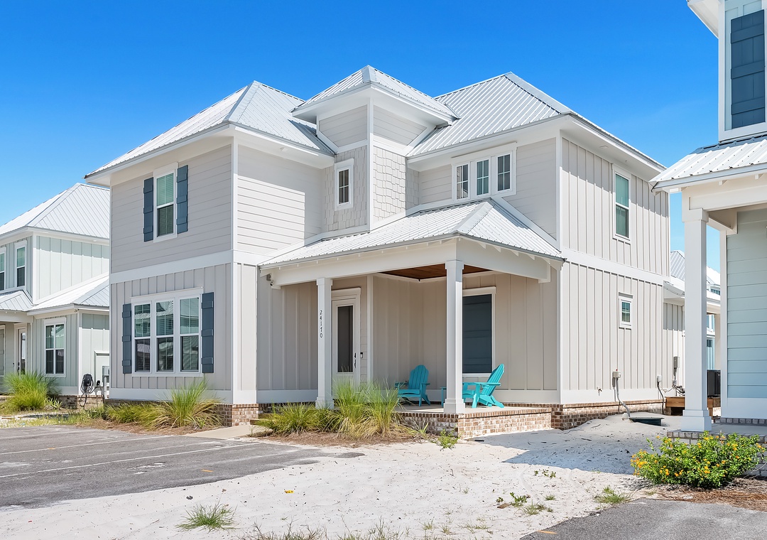 This 4 bedroom, 4.5 bath Harbor plan is a coastal designed home with 2415 square feet of beach style luxury living space. Upgraded painted cabinets, flooring, plumbing fixtures and tile. The kitchen features Calacatta Vicenza Quartz, a white siligranite sink and a 5 burner gas range. Highly desired EVP flooring throughout main living areas and all bedrooms. Parking galore with four assigned spaces and ample guest spots as well! Make Sea Charm your vacation choice for your Orange Beach getaway!