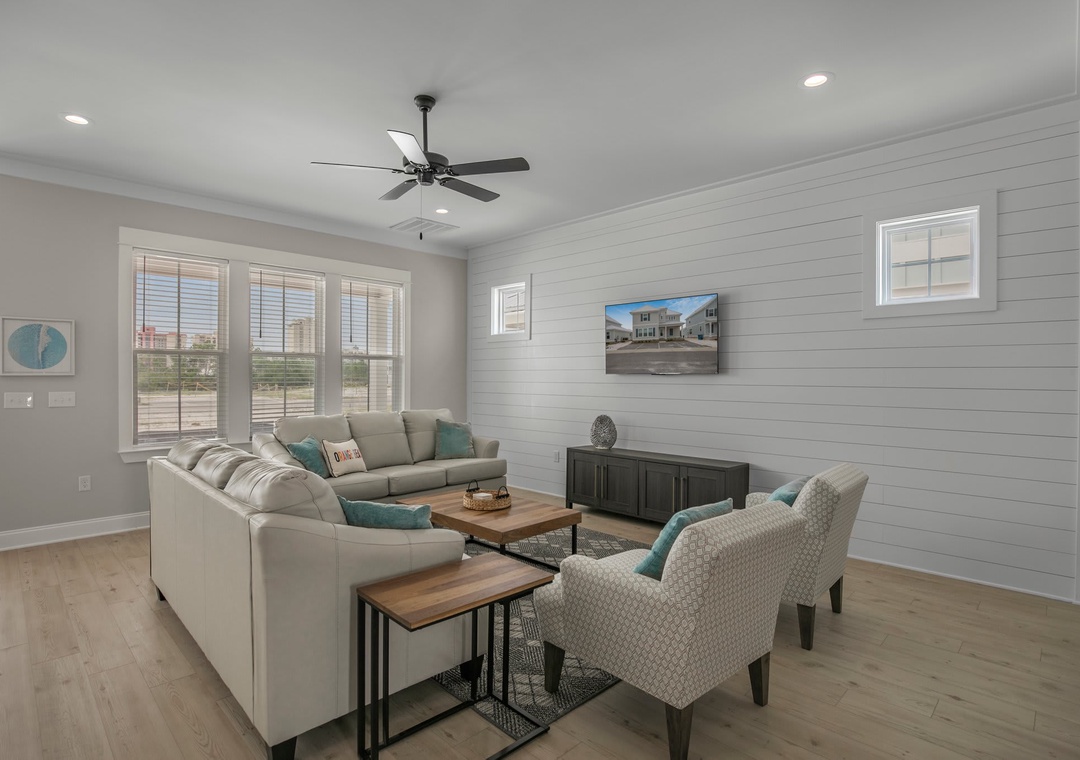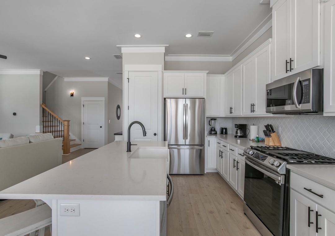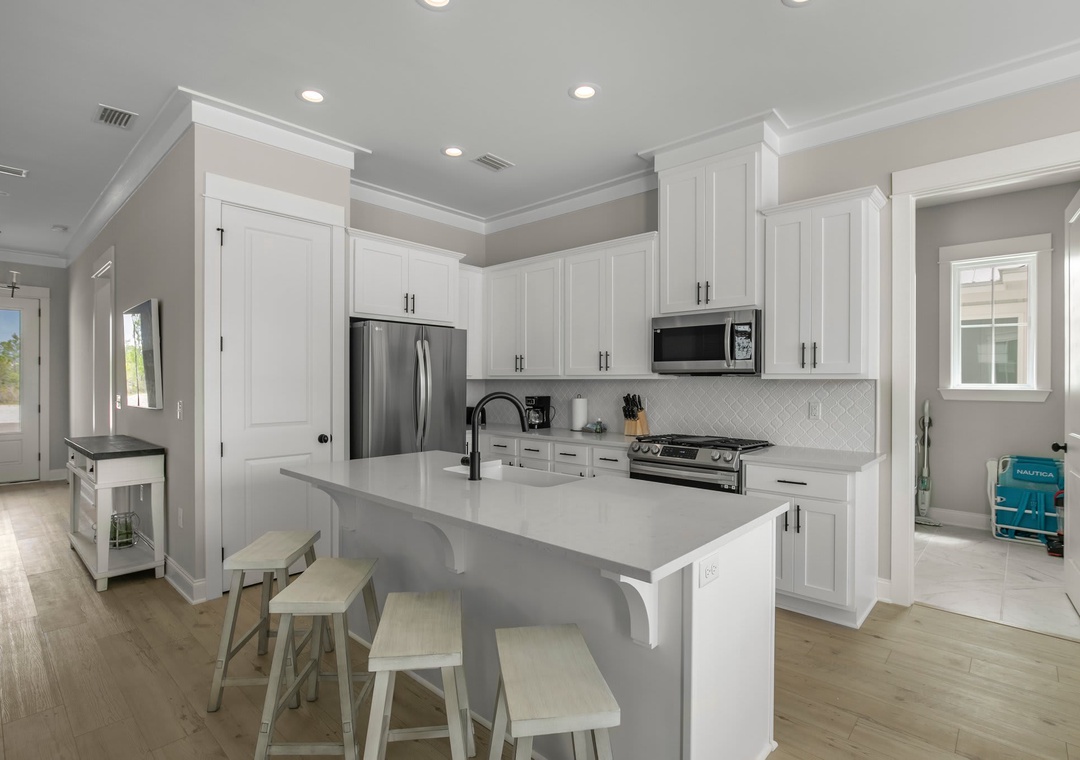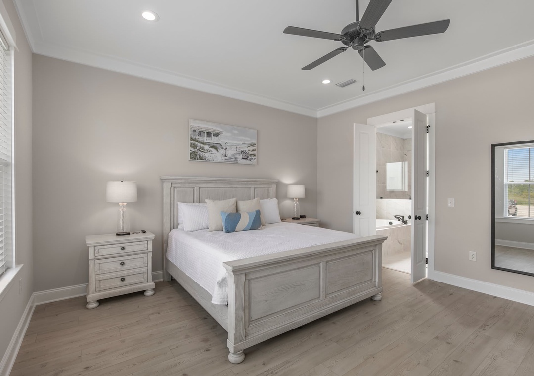 This 4 bedroom, 4.5 bath Harbor plan is a coastal designed home with 2415 square feet of beach style luxury living space. Upgraded painted cabinets, flooring, plumbing fixtures and tile. The kitchen features Calacatta Vicenza Quartz, a white siligranite sink and a 5 burner gas range. Highly desired EVP flooring throughout main living areas and all bedrooms. Parking galore with four assigned spaces and ample guest spots as well! Make Sea Charm your vacation choice for your Orange Beach getaway!