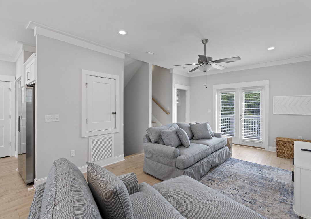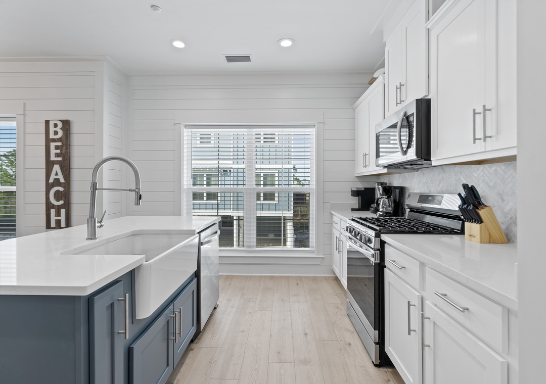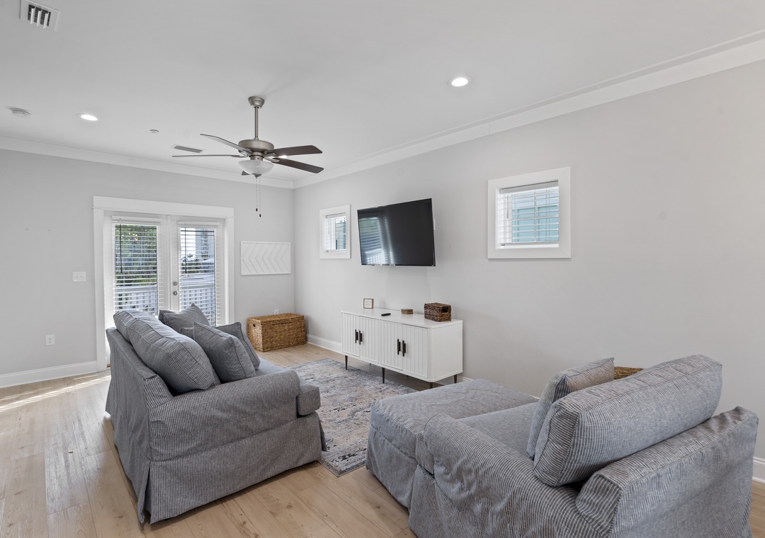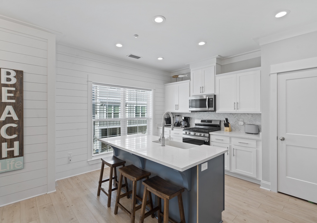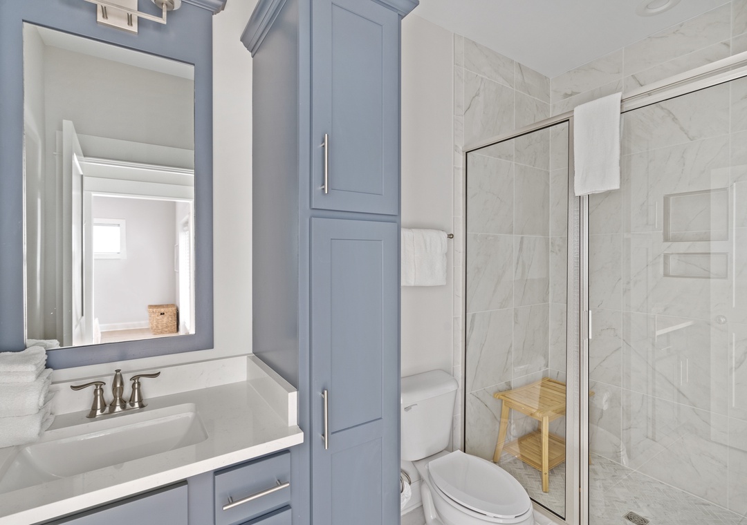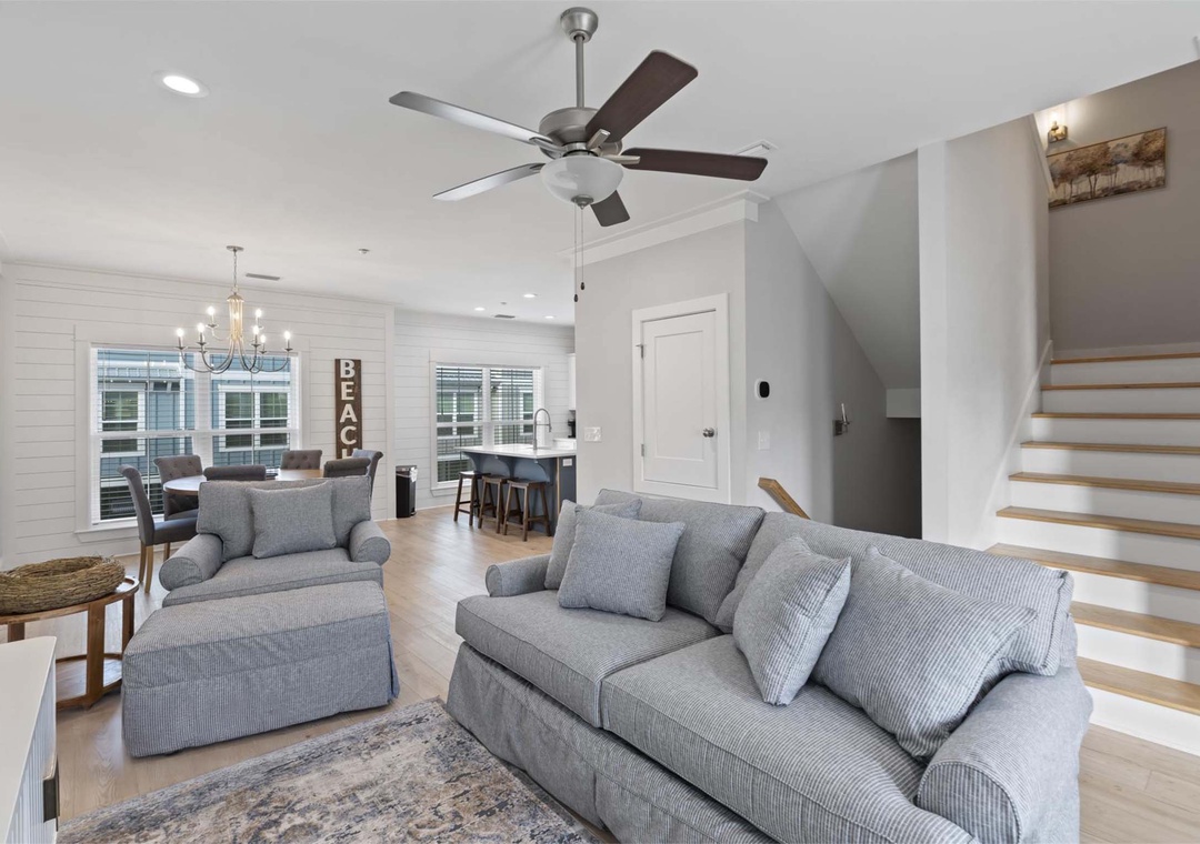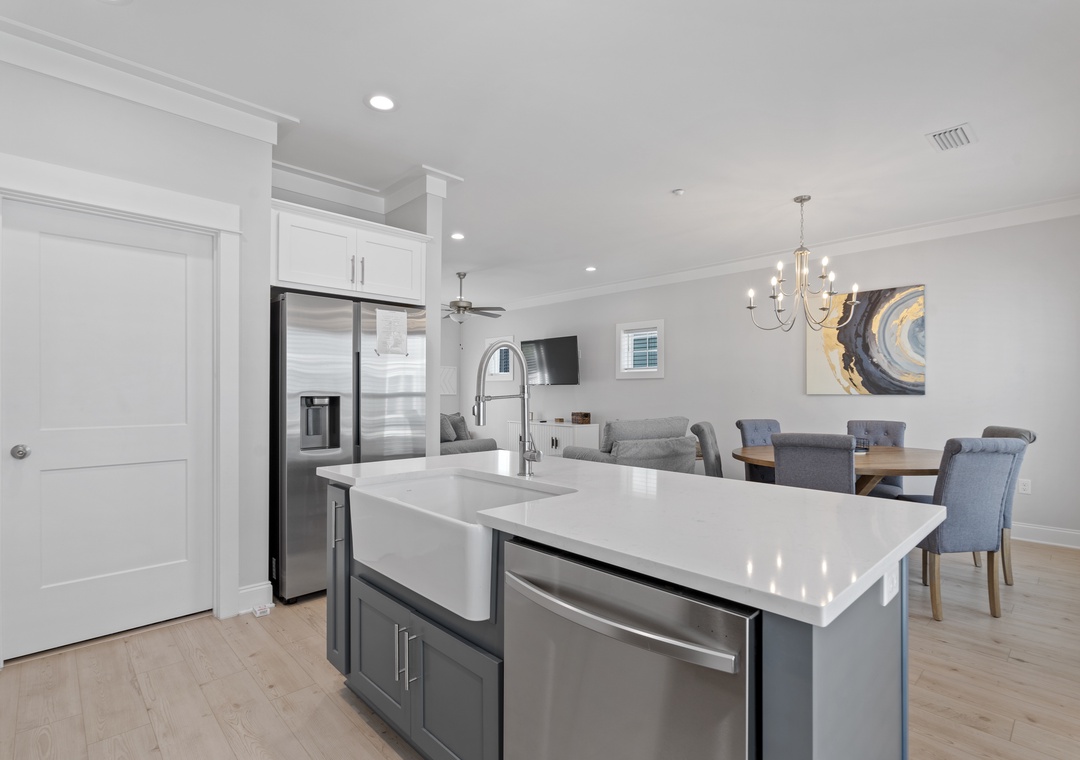 Inside, you’ll find a large open living space perfect for relaxing after a day in the sun. The fully equipped kitchen features granite countertops, a large island, stainless steel appliances, and a 5-burner gas stove—ideal for preparing meals and snacks. A full-sized washer and dryer ensure you can keep your beach gear fresh during your stay.
