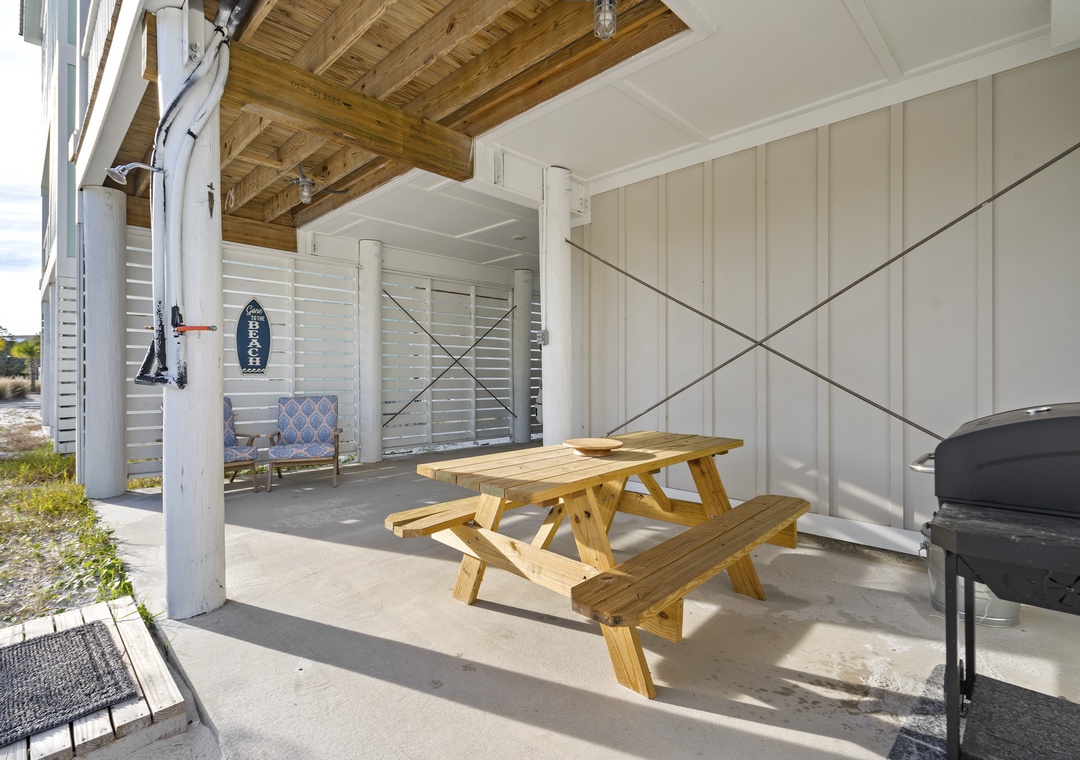 This unit was fantastic. Clean, cold AC, neat, and comfortable with like new mattresses. Within walking distance from the pool, mini golf, and eateries. Could have walked to the public beach access as it’s a flat 0.5 mile from the unit. The private two-car carport is an added bonus with outdoor shower.