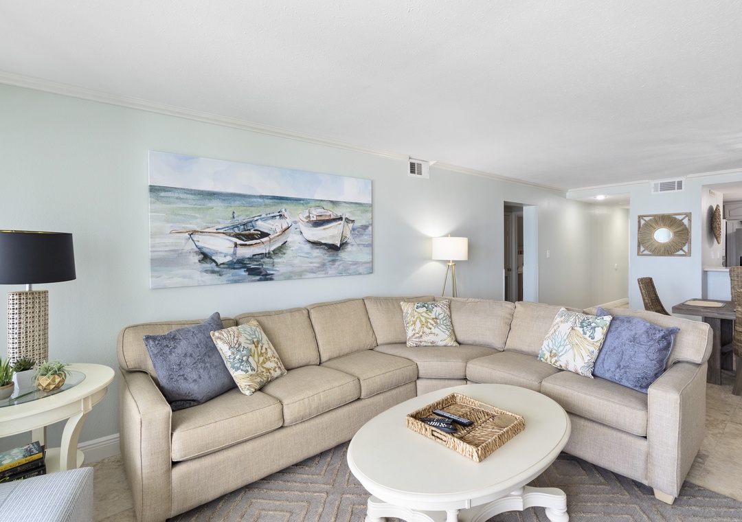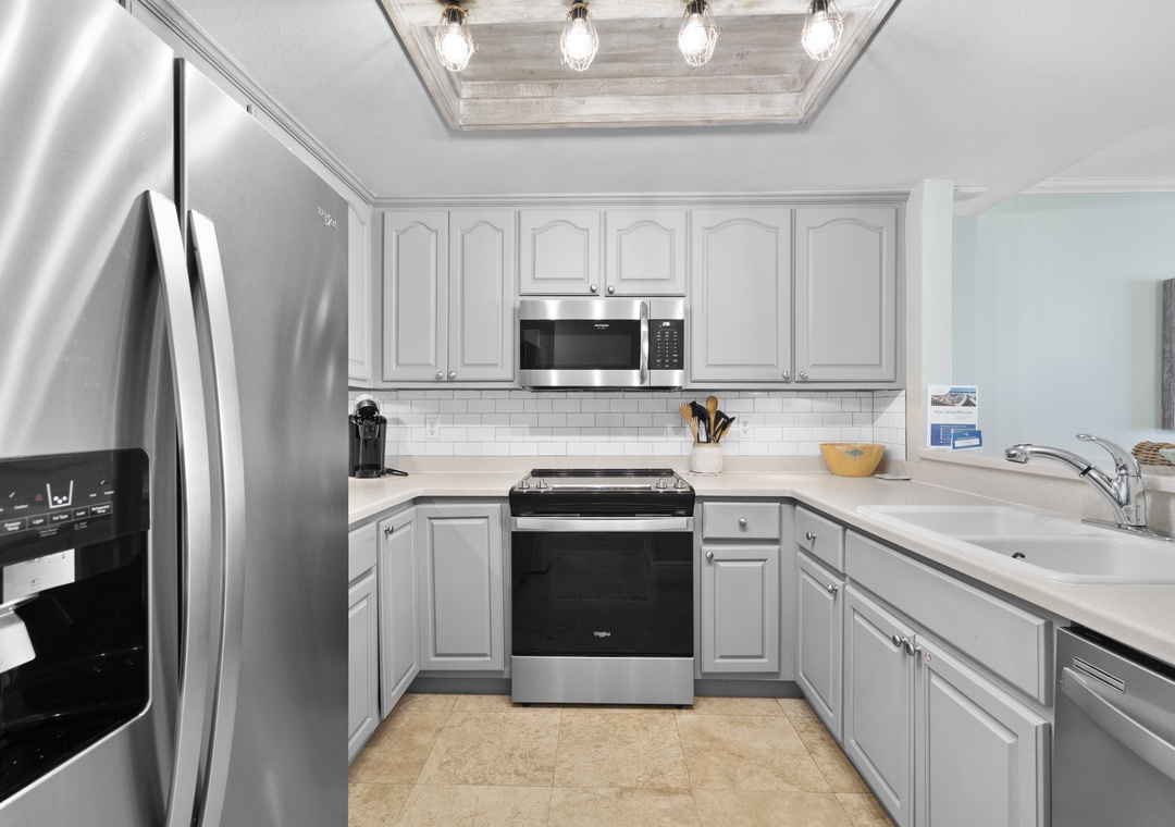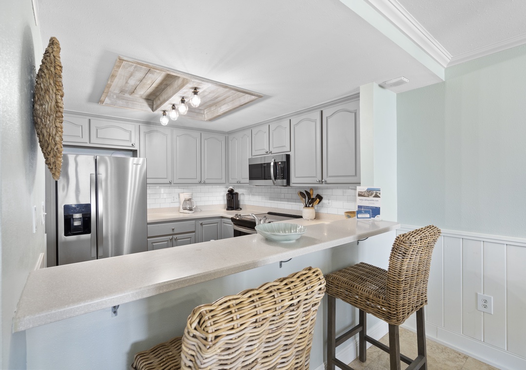 The fully equipped kitchen boasts stainless steel appliances, providing everything needed for meal preparation, from quick snacks to full dinners. The Breakers 42 combines comfort, convenience, and stunning Gulf-front views, making it a wonderful choice for a beach vacation.