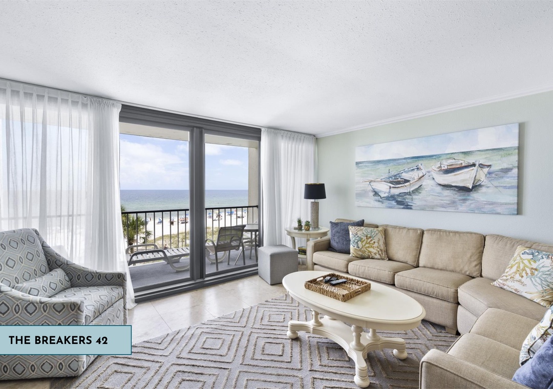The Breakers 42 is a charming 2-bedroom, 2-bath Gulf-front condo situated on the 4th floor, offering a perfect beachside retreat for up to 6 guests. This condo is ideal for families or small groups looking for a comfortable stay with stunning views of the Gulf of Mexico.