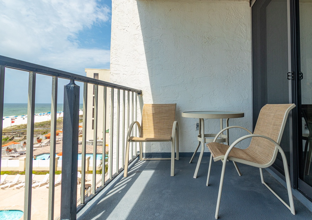 The balcony is a standout feature, providing guests with fantastic views of the Gulf. It's the perfect spot to relax and take in the picturesque surroundings, whether enjoying a morning coffee or watching the sunset.