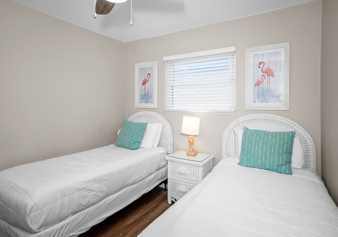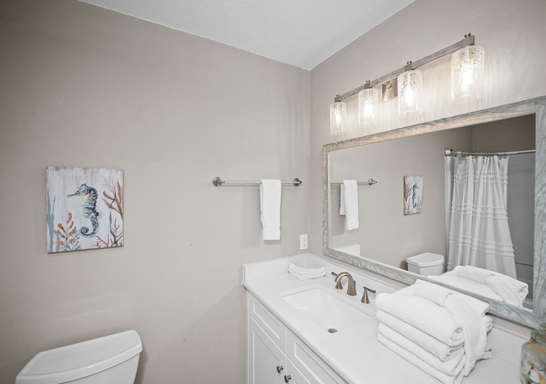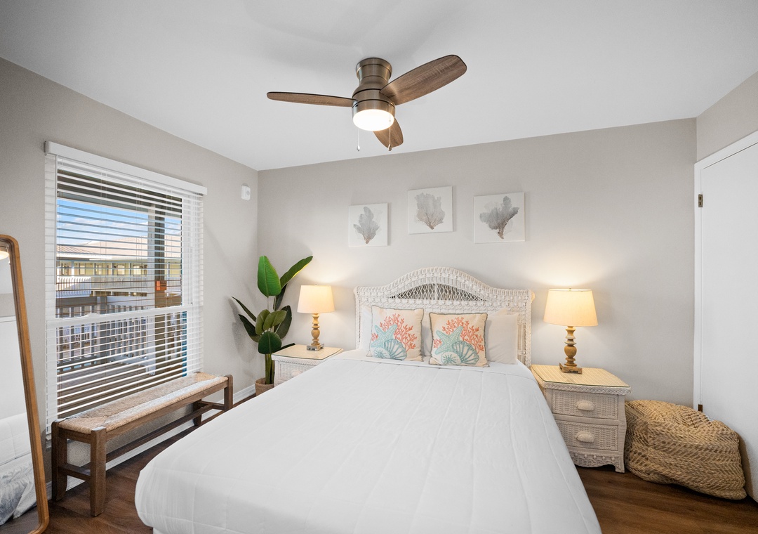 Welcome to your ultimate vacation retreat at The Cove 205B! This beautifully updated two-bedroom condo has been meticulously designed to ensure your relaxation and comfort throughout your stay. Step into the inviting open-concept living space, where a plush couch and a flat-screen TV beckon you to unwind and make yourself at home. The well-equipped kitchen awaits your culinary adventures, stocked with everything you need to whip up delicious local seafood dishes. Gather around the dining table, which comfortably seats four, and enjoy meals together with ease. For added convenience, a washer and dryer are tucked away right in the unit. Retreat to the peaceful main bedroom, featuring a luxurious queen bed for a restful night's sleep. The main bathroom offers a convenient shower/tub combo for your comfort. Head up the stairs to the loft, where you'll find two cozy twine beds awaiting your relaxation. Plus, an additional bathroom with a shower/tub combo ensures everyone's needs are met. With all these amenities and more, your getaway in this charming condo promises to be nothing short of delightful.