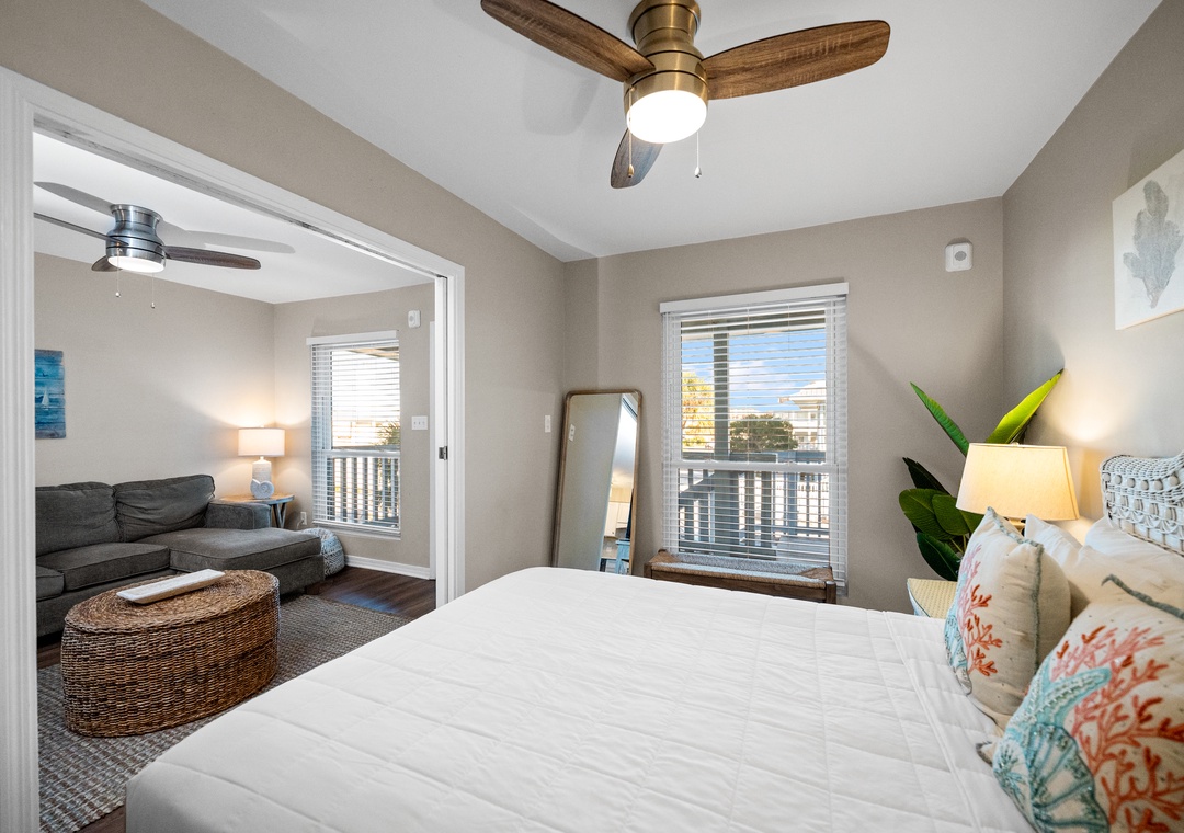 place was extremely clean!! Exactly as described in pictures!! My teen girls loved the loft area. Beach was very walkable, and loved the store next door (very convenient) . we were there for ShrimpFest, and very walkable to festival!! The only downside to our trip was one of the pocket doors to master bedroom was broke and didn't shut properly and the light over the staircase outside was right outside master window (although it is my personal preference to sleep in pitch dark, some people might not mind it). kitchen had all basic utensils to cooked meals.- Reviewed On: 10/12/2025