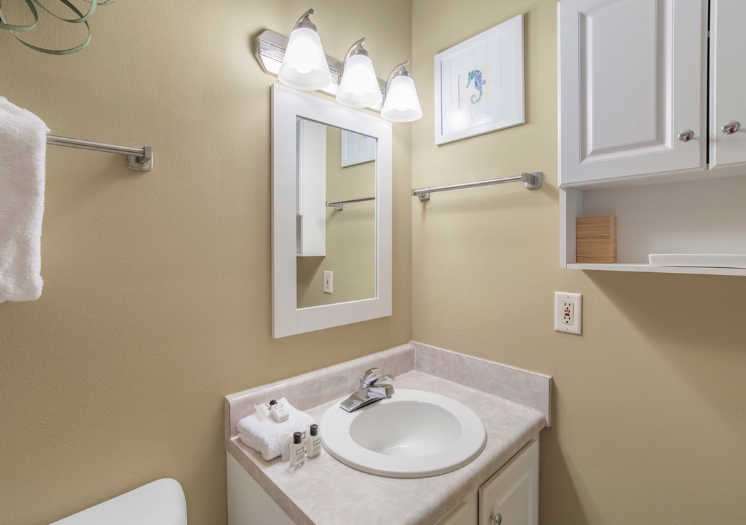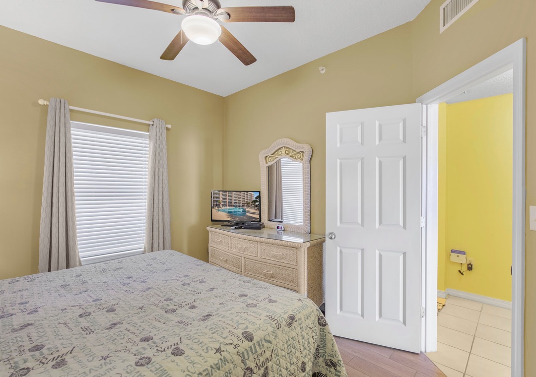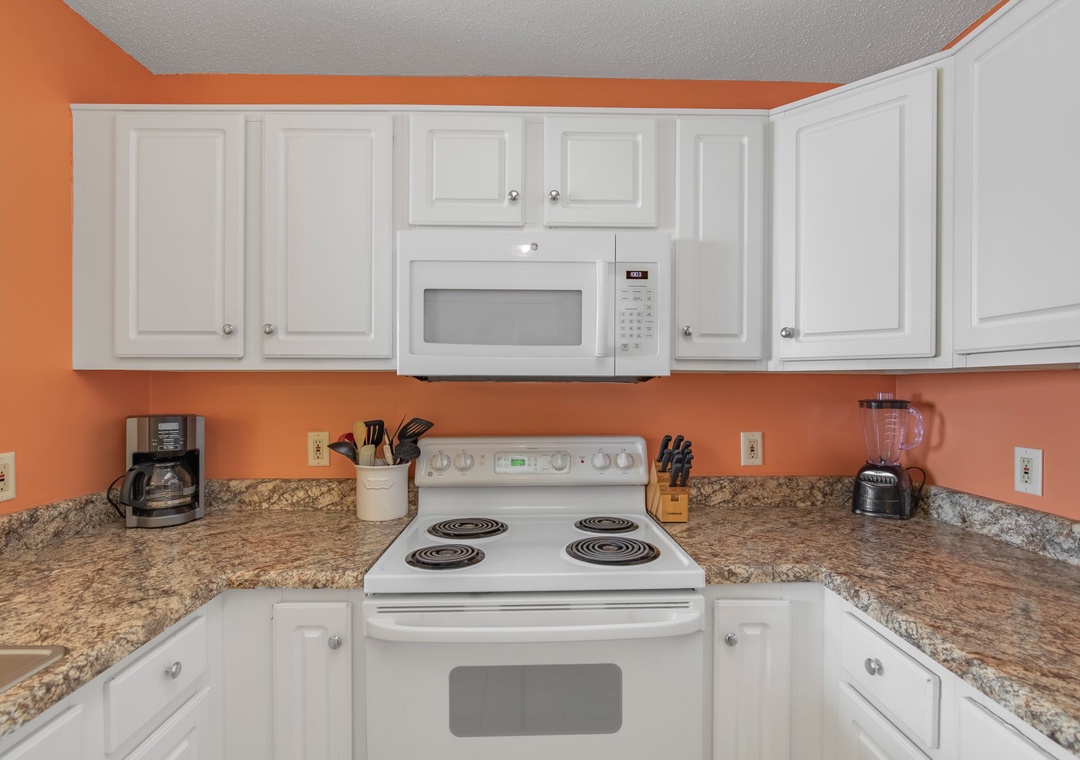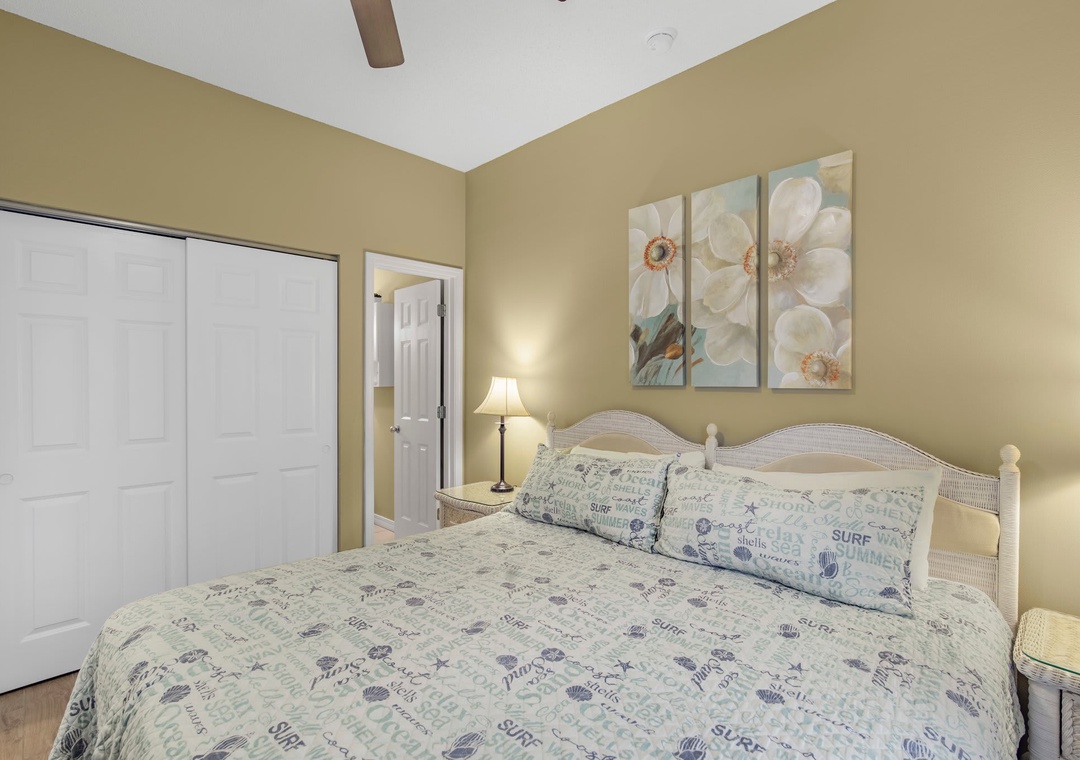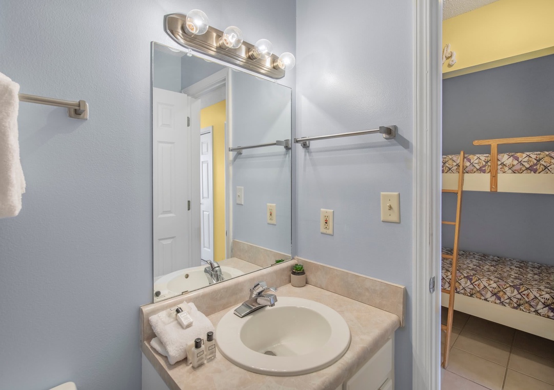An open concept kitchen and living area layout, that has plenty of room for the entire family. Beautiful views streaming in from your own private balcony. The well-equipped kitchen has everything needed to whip up a local seafood dish, stocked with pots/pans/utensils. Enjoy your morning coffee on the private balcony and take in the dazzling views. Relax after a day on the beach in the comfortable living space with a sleeper sofa. The peaceful bedroom features a king-size bed. Bathroom has a shower/tub combo. The hallway has a bunkbed featuring two twin-size beds.