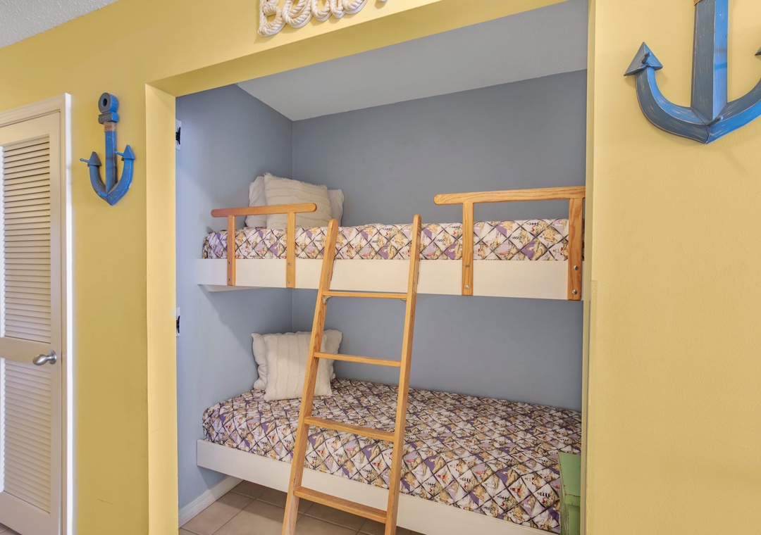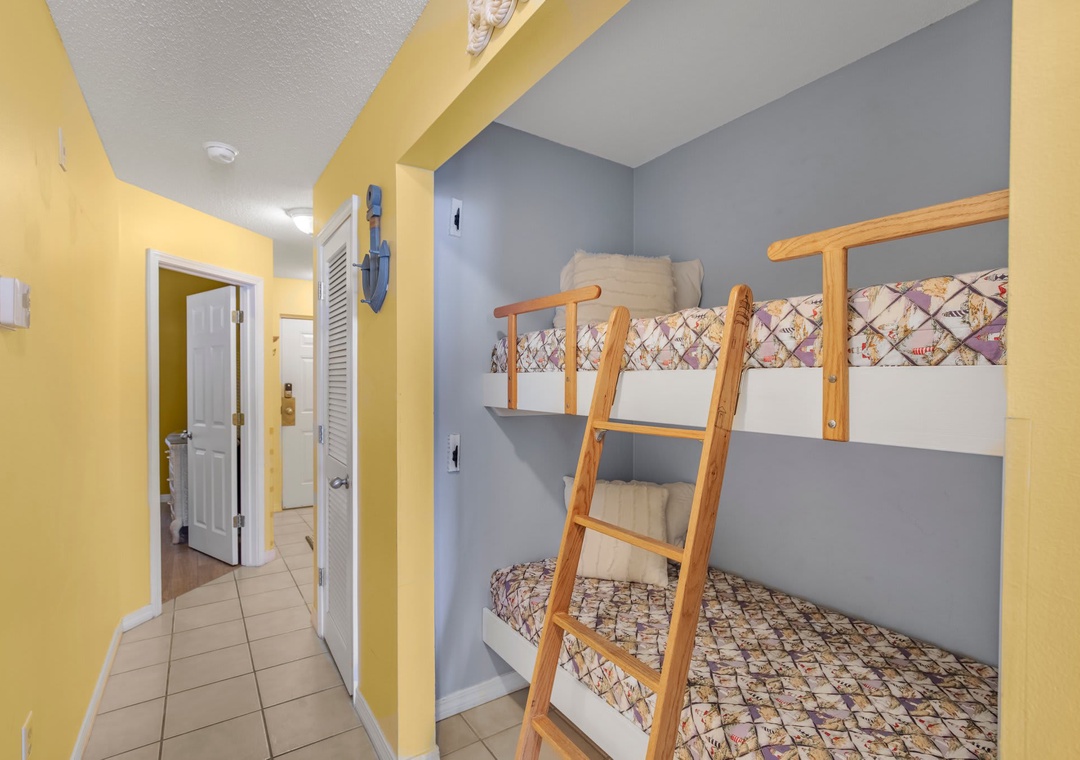 The hallway has a bunkbed featuring two twin-size beds.