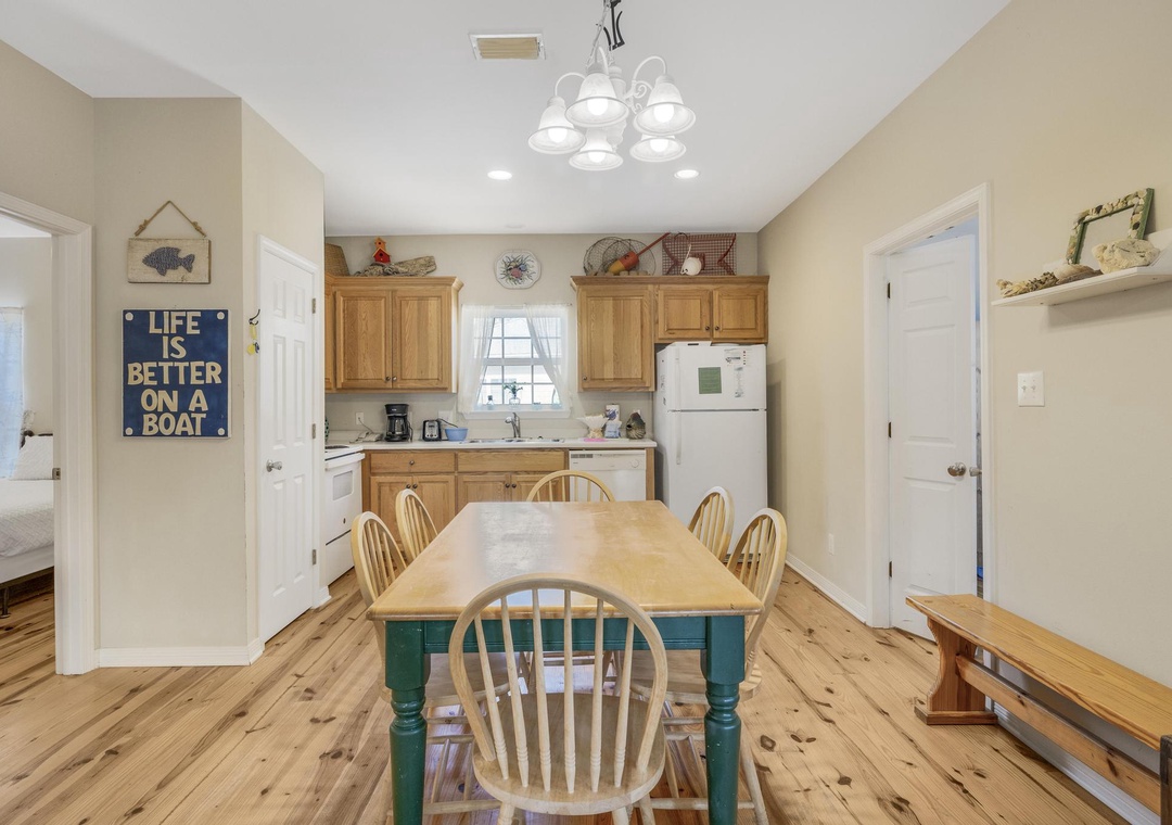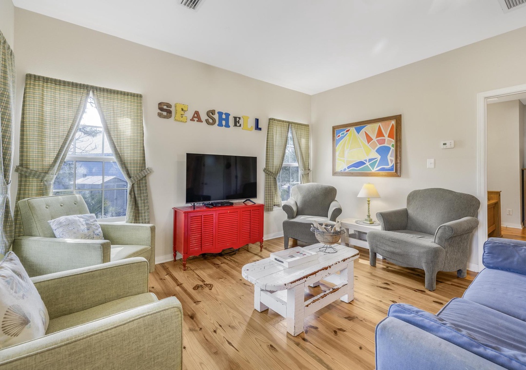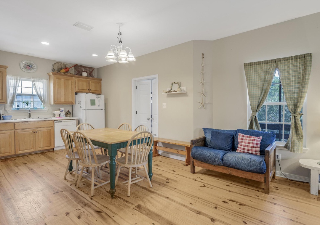 This three-bedroom coastal cottage is perfect for your next family vacation! Upon entering the cottage you step through the screened in front porch. The private porch is the perfect place to drink your morning coffee or an evening cocktail at sunset. Inside is a spacious comfortable living room to kick back and relax after a day on the beach. The open concept layout brings together the living space and kitchen. An updated well-equipped kitchen is stocked with pots/pans/utensils to whip up a local seafood dish during your stay. The dining area comfortably seats six at the table. There is a washer and dryer in the cottage for your convenience.