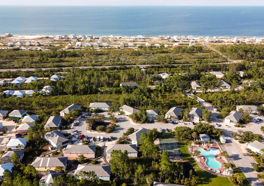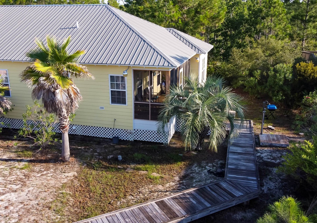 The Rookery is located 14 miles down Fort Morgan Road at mile marker 6, turn right into the Rookery. Go across the wooden bridge, and at the first stop sign take a right. Unit 2202 is a yellow cottage, it is located in between units 2602 and 2601 between a pink and blue house. The lockbox is located on the door handle of the screened door.