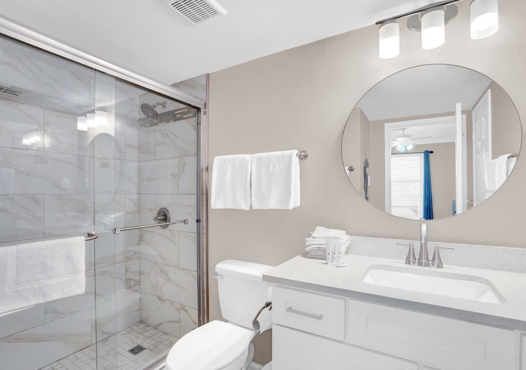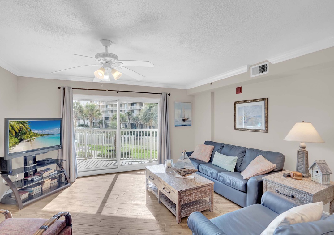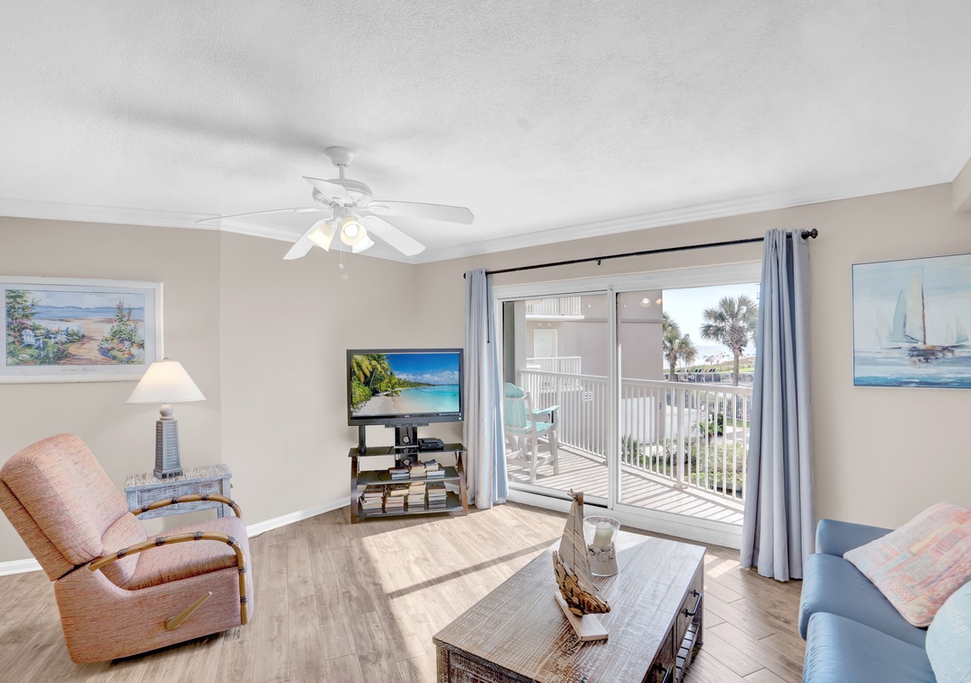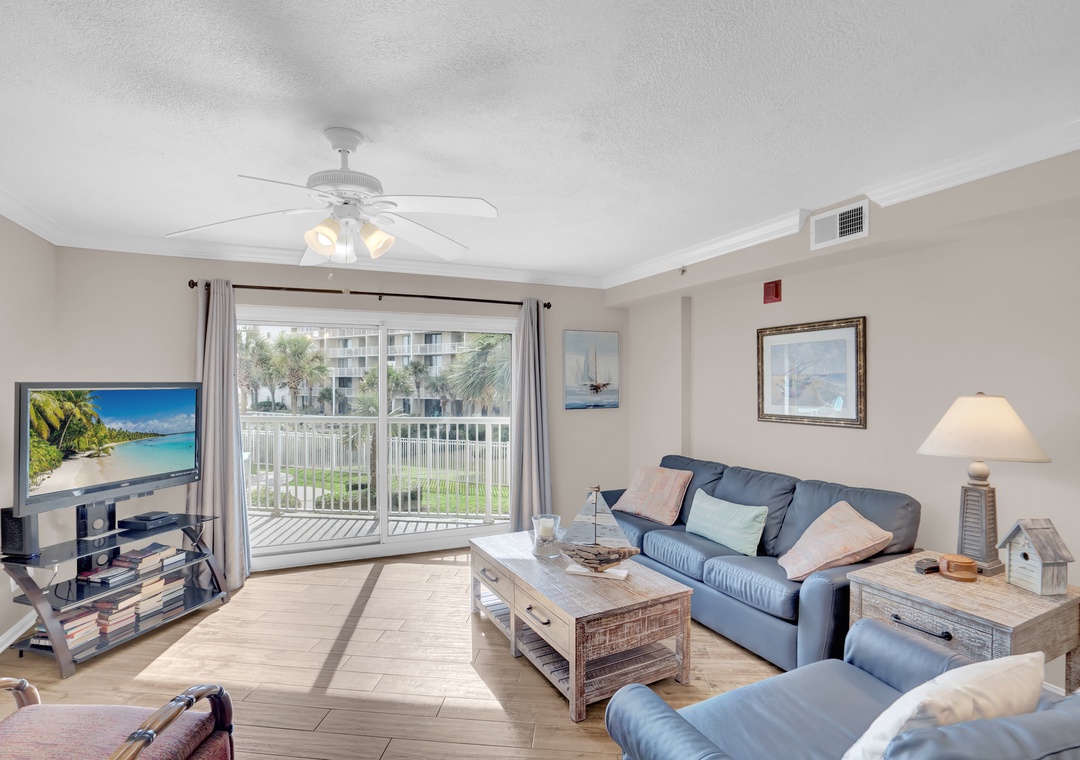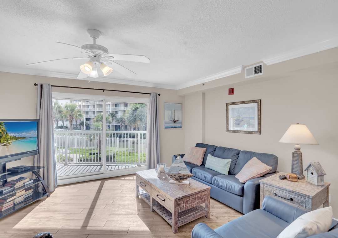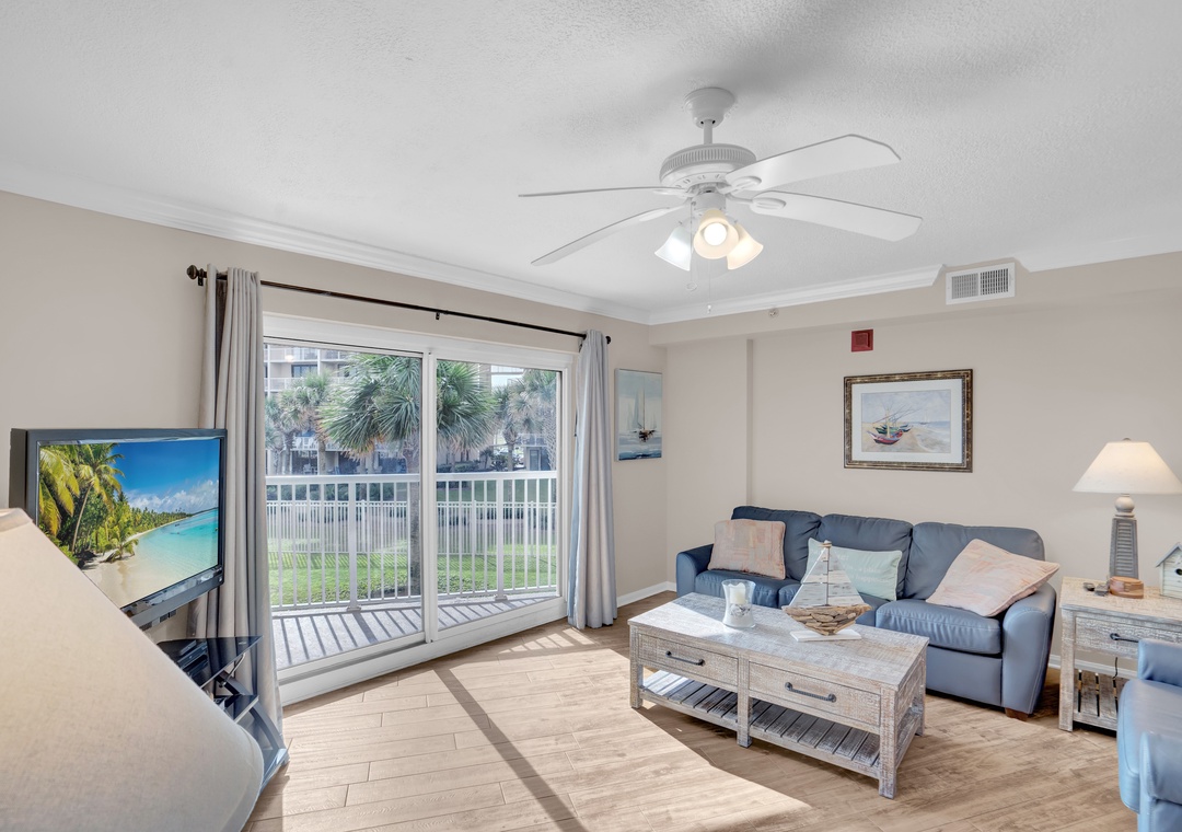 The Primary suite offers a plush King-sized bed and a flat-screen TV for your entertainment, ensuring restful nights after a day of sun and sand. The guest bedroom includes a cozy Queen-sized bed and its own flat-screen TV, making it a comfortable retreat for family or friends. For additional sleeping space, the living room offers a Queen-sized sleeper sofa, allowing this condo to accommodate up to 6 guests.
