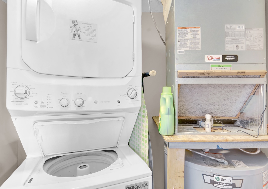 * Stacked washer/dryer & free Wi-Fi included