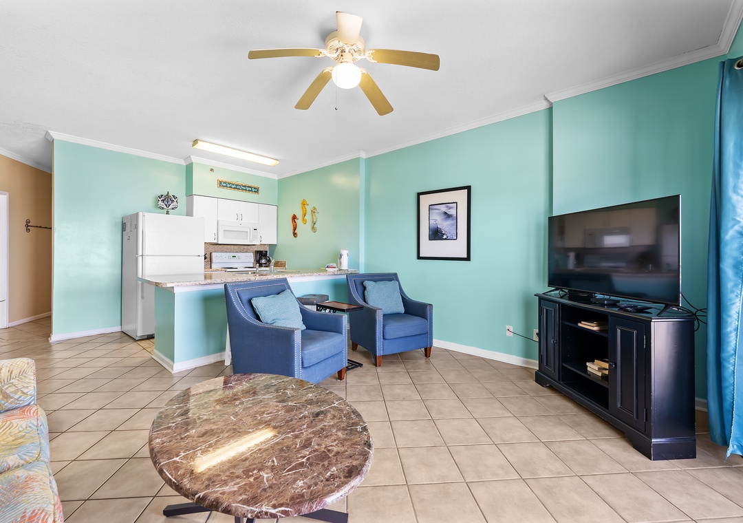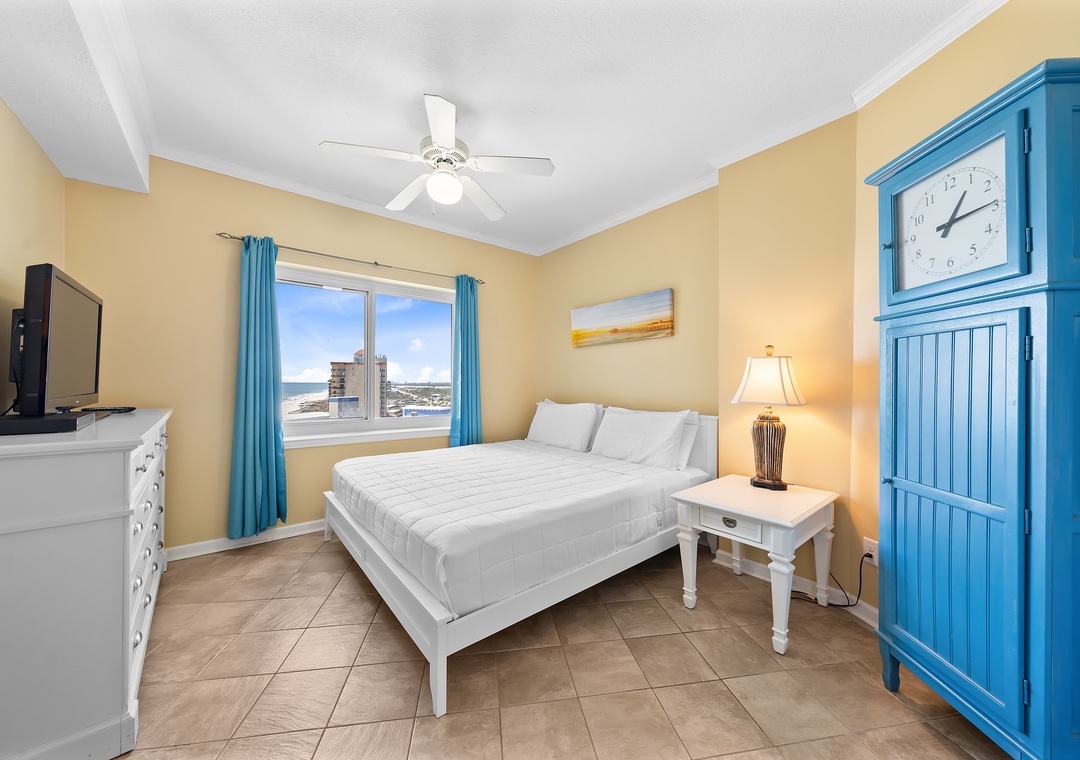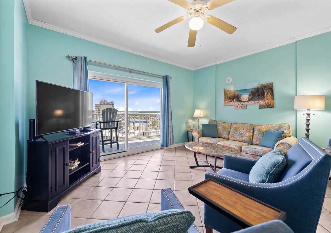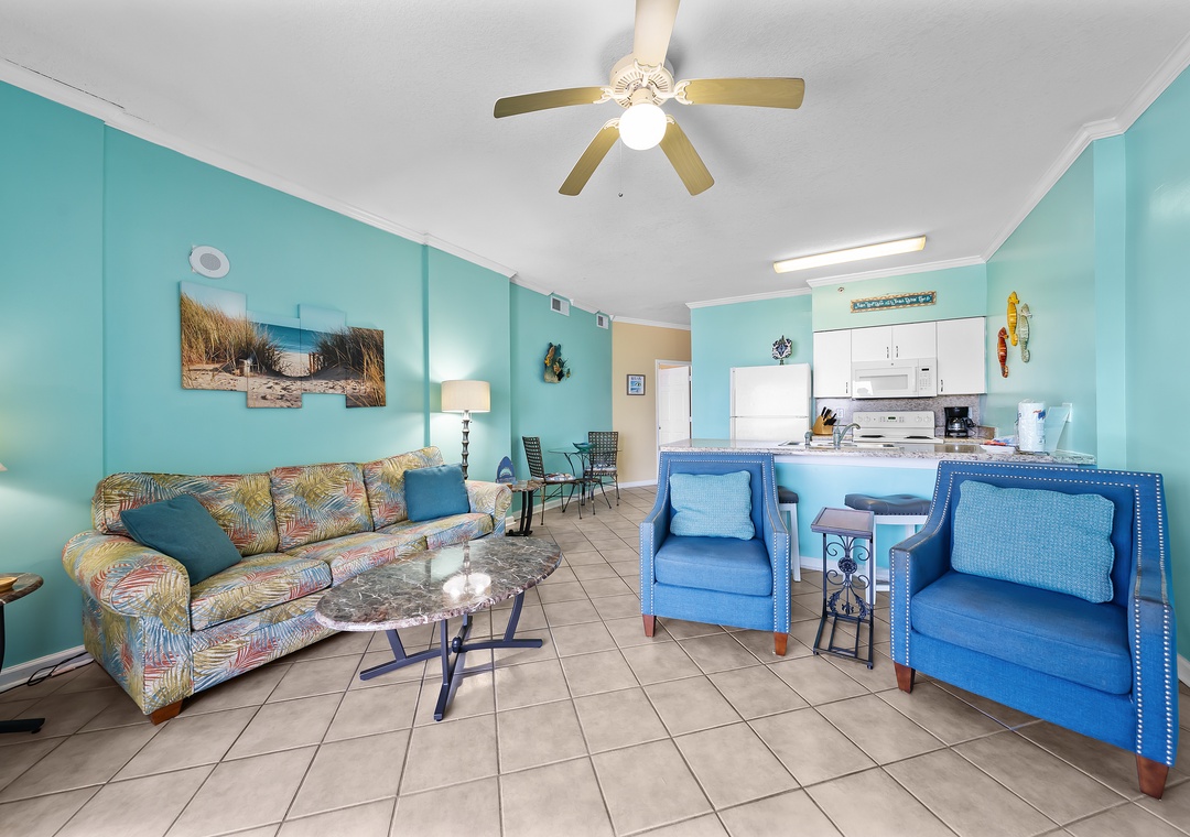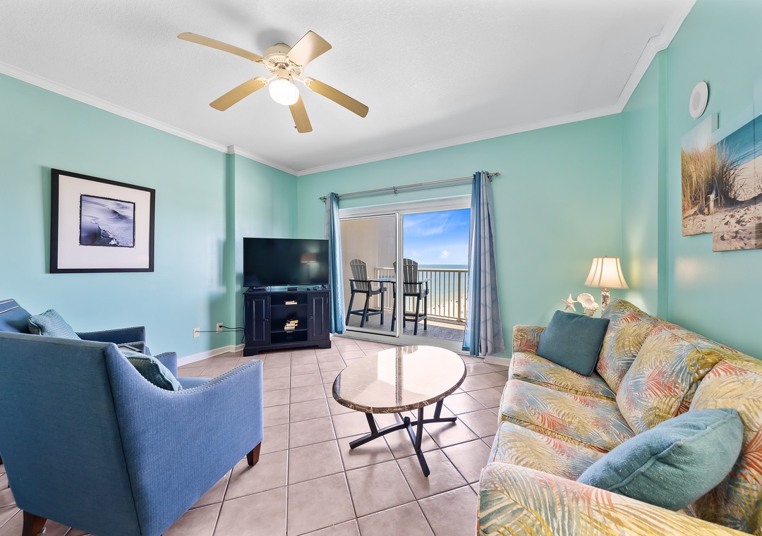 Welcome to Tradewinds 1207, your serene Gulf-front retreat in Orange Beach. Perched on the 12th floor, this beautifully decorated 2-bedroom, 2-bathroom condo offers stunning side views of the Gulf of Mexico, providing the perfect backdrop for your beach vacation. Relax to the soothing sound of waves crashing against the shore as you unwind in this cozy coastal haven. Inside, the living room features comfortable seating, a flat-screen TV, and a Queen sleeper sofa for additional guests. The fully equipped kitchen makes it easy to prepare delicious meals, whether you’re cooking a quick breakfast or a family dinner, while tile floors throughout create a fresh and inviting atmosphere. Stay connected with free WiFi during your stay.