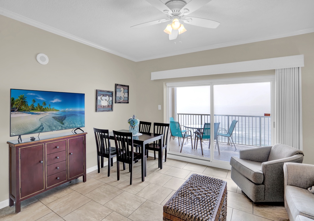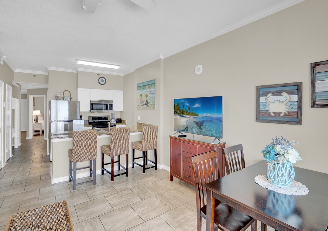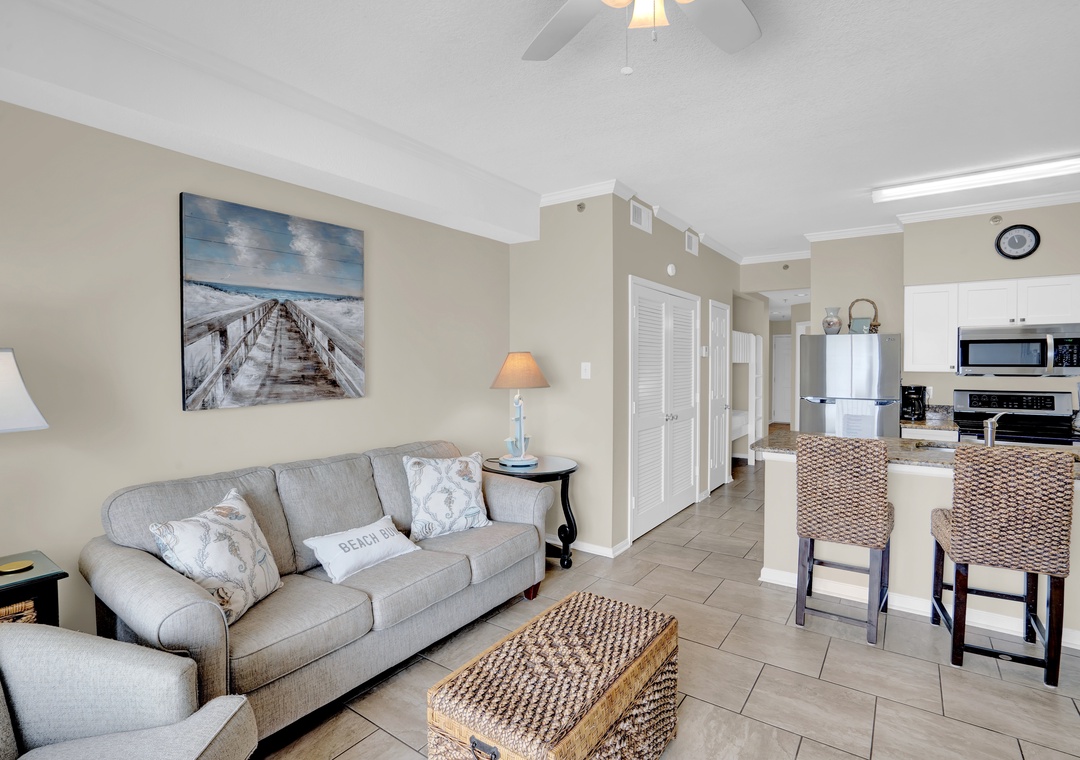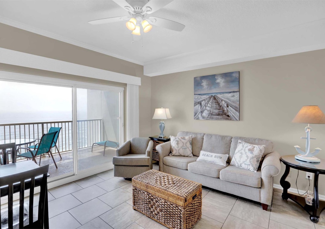 Step inside to an open living space filled with natural light and sliding glass doors that lead to a private balcony overlooking the Gulf. Enjoy a well-equipped kitchen with all the essentials for home-cooked meals, plus a dining area perfect for family gatherings. After a day on the beach, relax in the cozy living room or step outside to enjoy stunning sunsets.