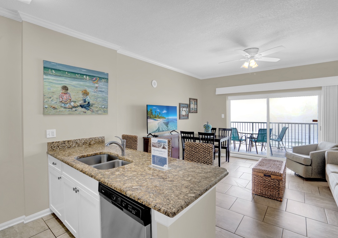 We enjoyed everything about our stay in this beach condo and the view was amazing!! We will definitely stay here again!! It was just my husband and I for 6 nights and we were good with the start up supplies provided. The only thing you might need to do is bring along a couple of detergent pods for the dishwasher if you plan to cook in the condo.- Reviewed On: 8/31/2024