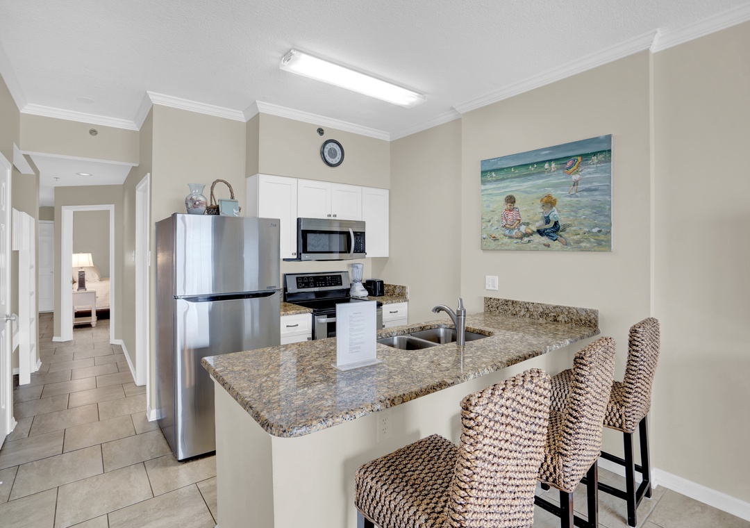 The condo was just as advertised! Very clean and the kitchen was stocked nicely. Loved how it wasn’t a huge property, so the property itself was never overcrowded. The elevators never had a long wait at all! My only suggestion, is to possibly put a hotel lock of some sort on the front door, as my 3 year old could open it, but other than that, it was perfect for our family of four!- Reviewed On: 6/24/2023