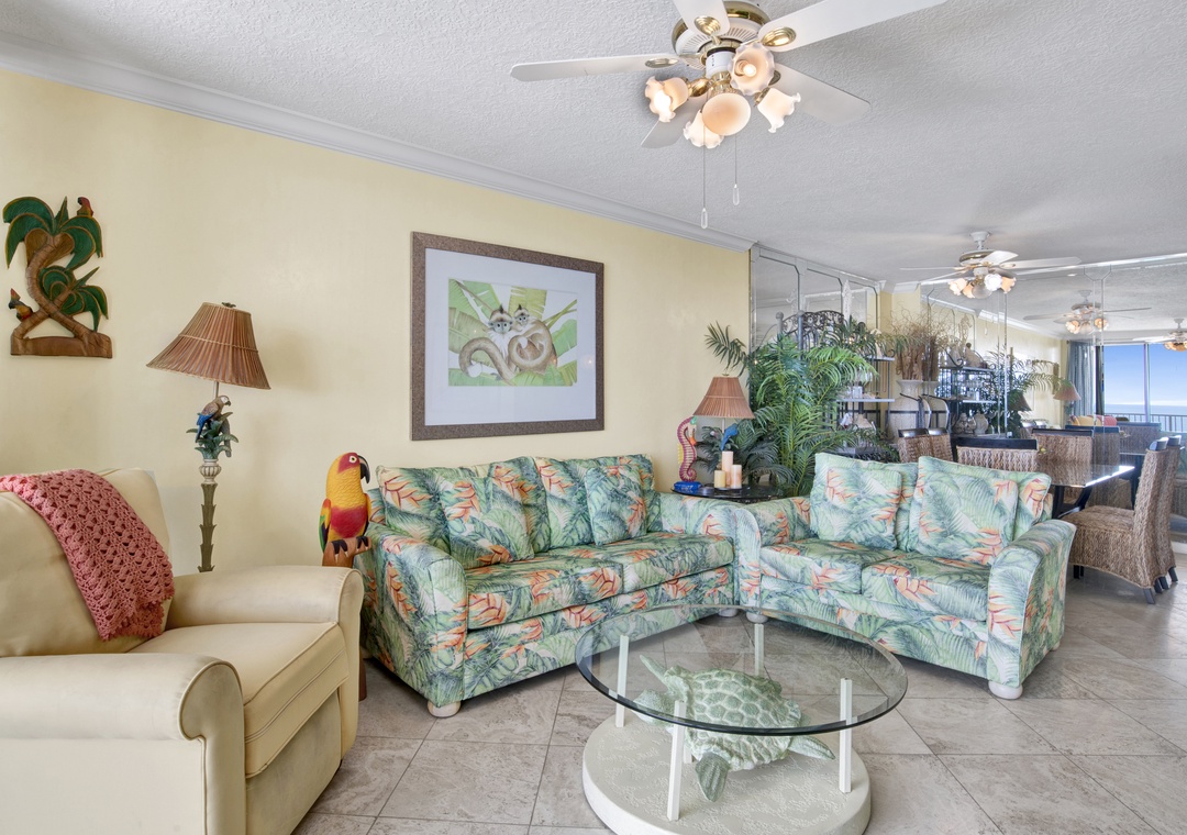 Welcome to White Caps 1502, your luxurious Gulf-front oasis in Orange Beach. Perched on the 15th floor, this stunning 3-bedroom, 2-bath condo is designed to deliver breathtaking views and unmatched comfort. The highlight of this retreat is the expansive private balcony, accessible from both the living room and the Primary suite. Start your morning with coffee as the sun rises over the Gulf, or wind down in the evening to the soothing rhythm of the waves. Inside, the spacious living area offers comfortable furnishings, a large flat-screen TV, and a sofa sleeper, making it perfect for both relaxation and gathering with family or friends.