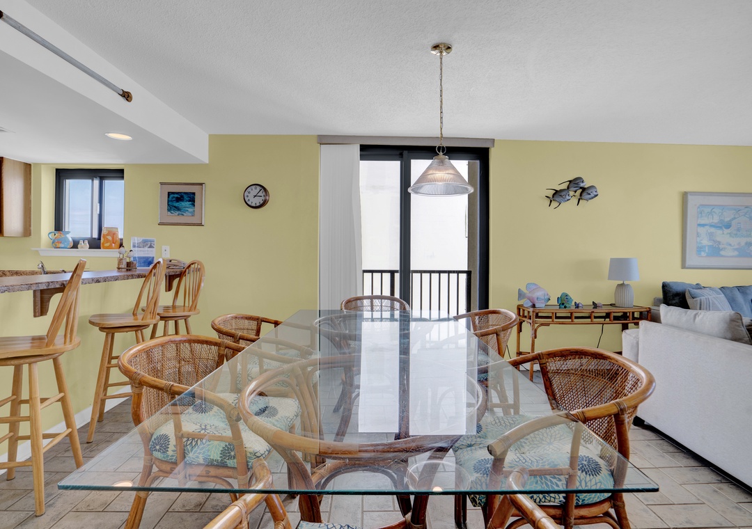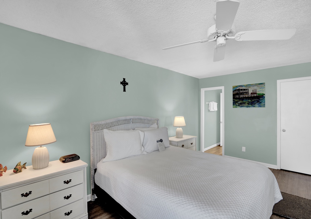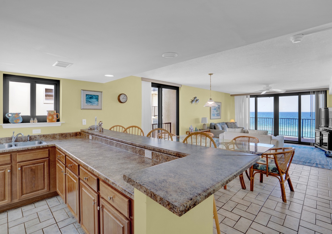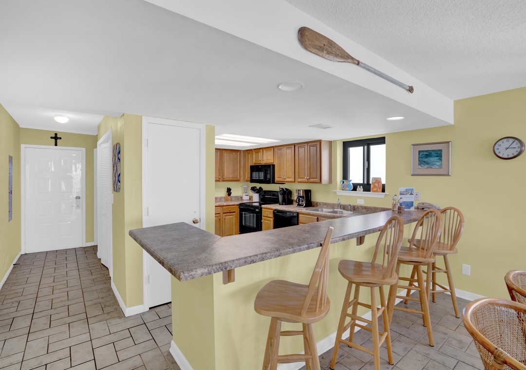 The fully equipped kitchen makes it easy to prepare meals and includes a wet bar for mixing up refreshing beverages. A full-sized washer and dryer add convenience to your stay, keeping your beachwear clean and ready for the next day’s adventures.