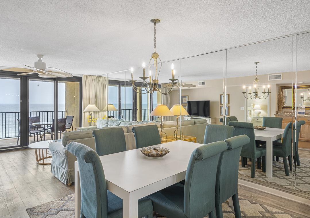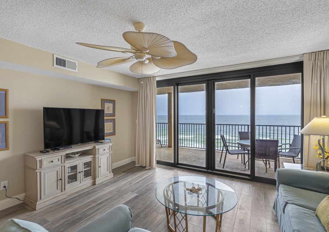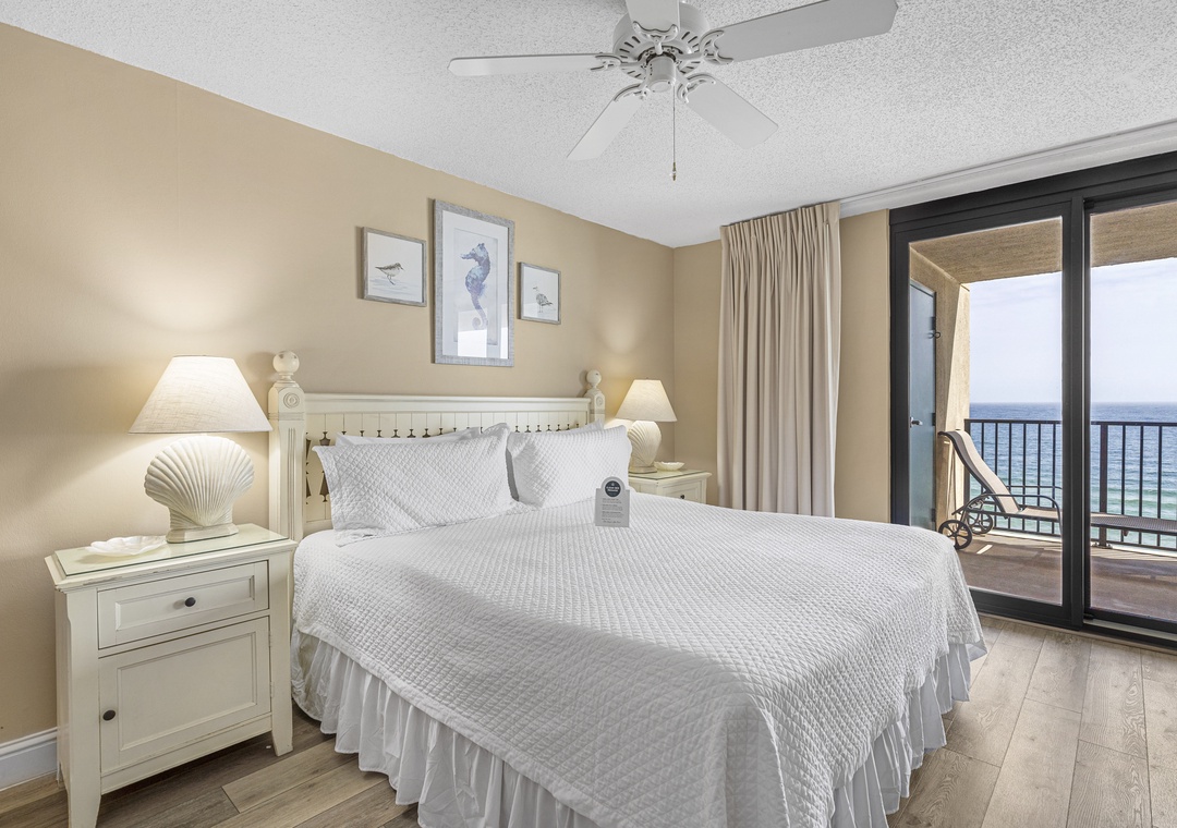 Situated on the 7th floor of the East Tower, this condo showcases captivating Gulf views from its open floor plan living area. Step onto the balcony to savor the panoramic coastline and the soothing sounds of the waves. The Primary suite features a plush King bed, flat-screen TV, DVD player, private balcony access, and an ensuite bath with a tiled walk-in shower for added comfort. The Guest bedroom includes a Queen bed and Twin bed, plus a flat-screen TV and DVD player.
