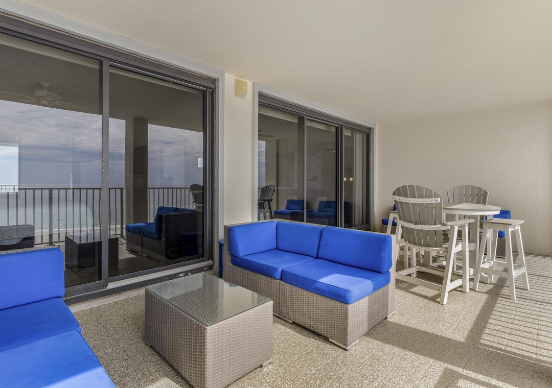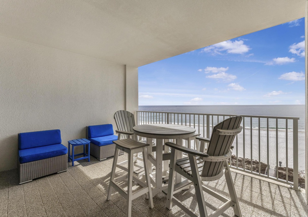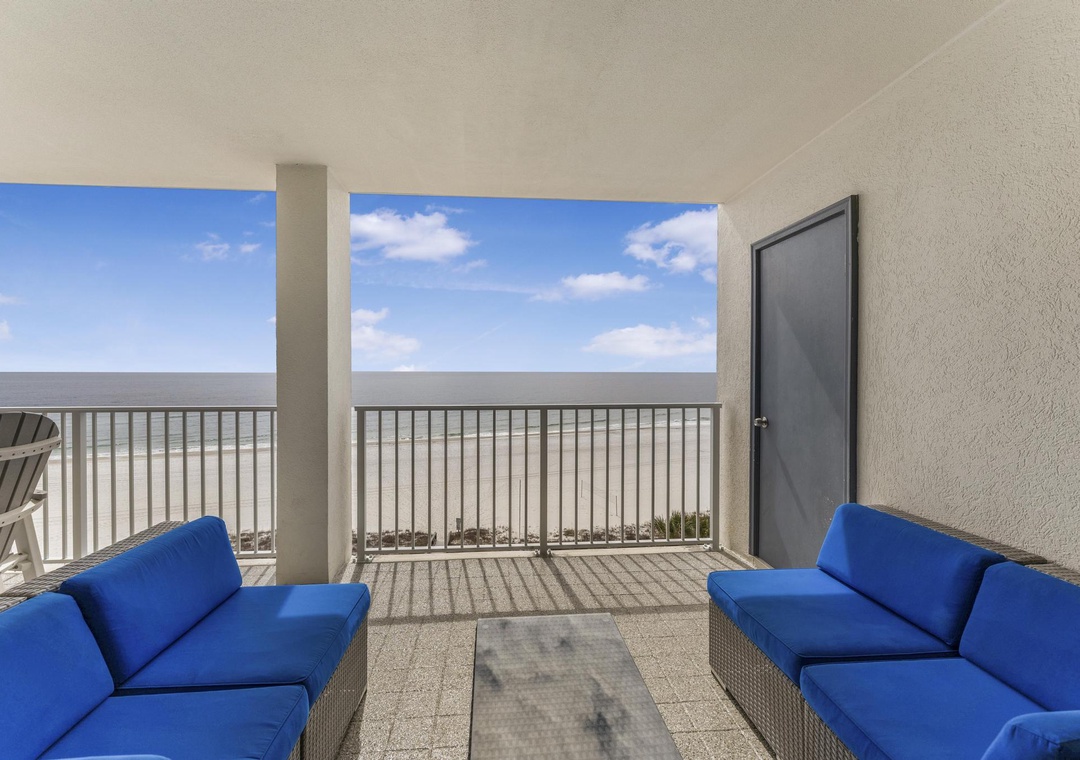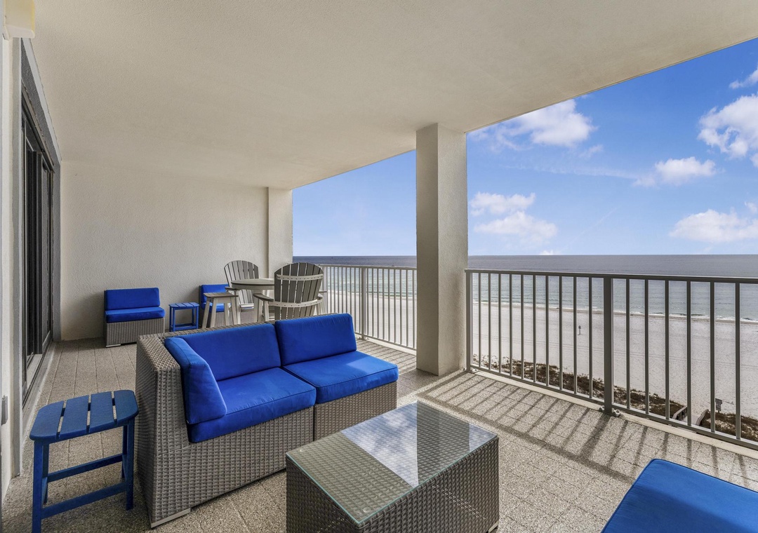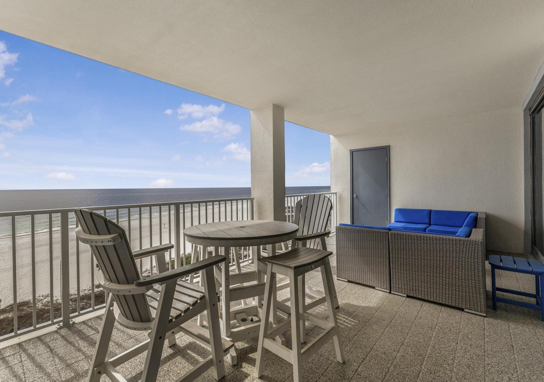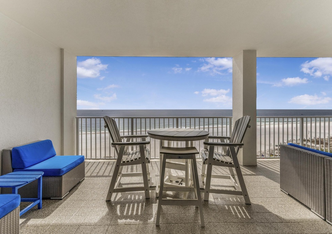 Private Balcony: Unwind on the oversized, covered balcony with breathtaking Gulf views. Relax on the outdoor sofa or enjoy a meal at the balcony dining table while listening to the soothing sound of waves.