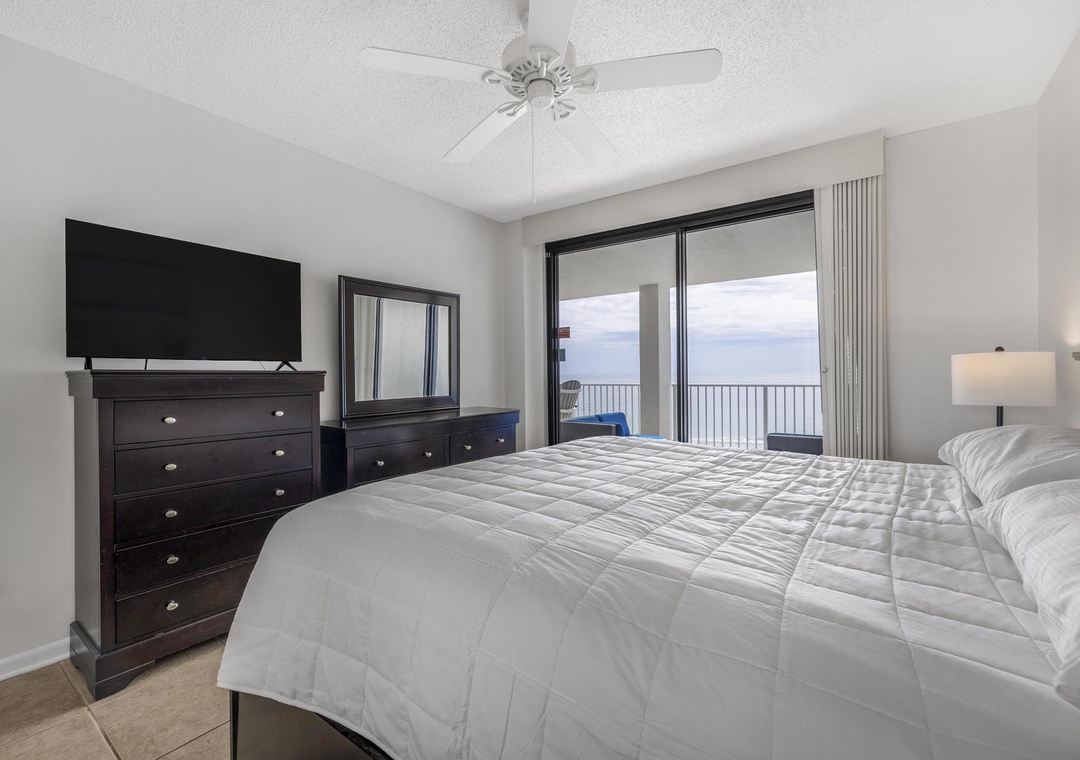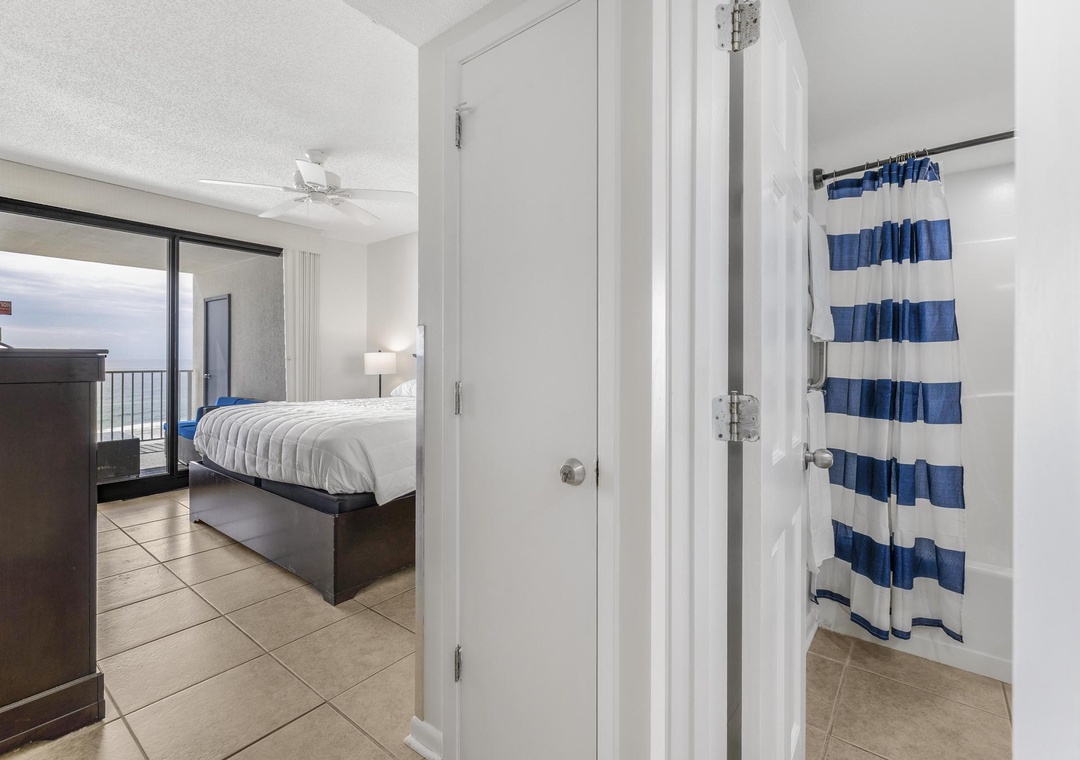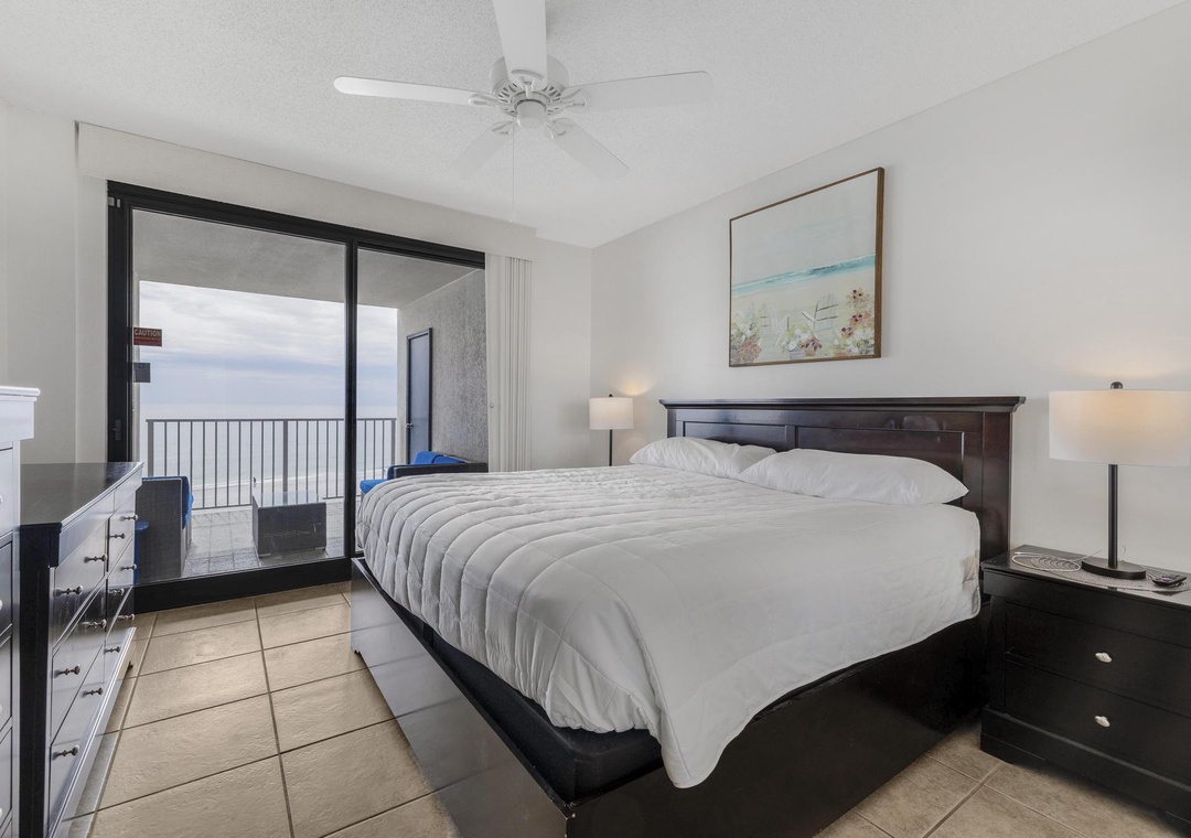 Bedroom 1: King bed with an ensuite bathroom and private balcony access.